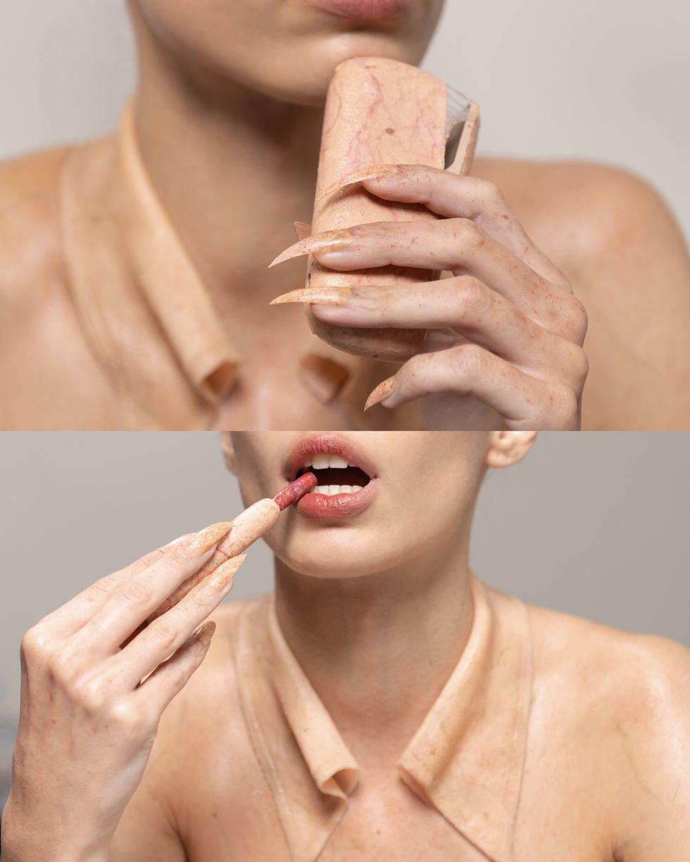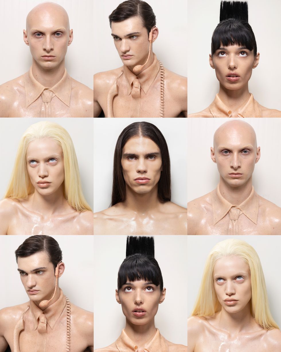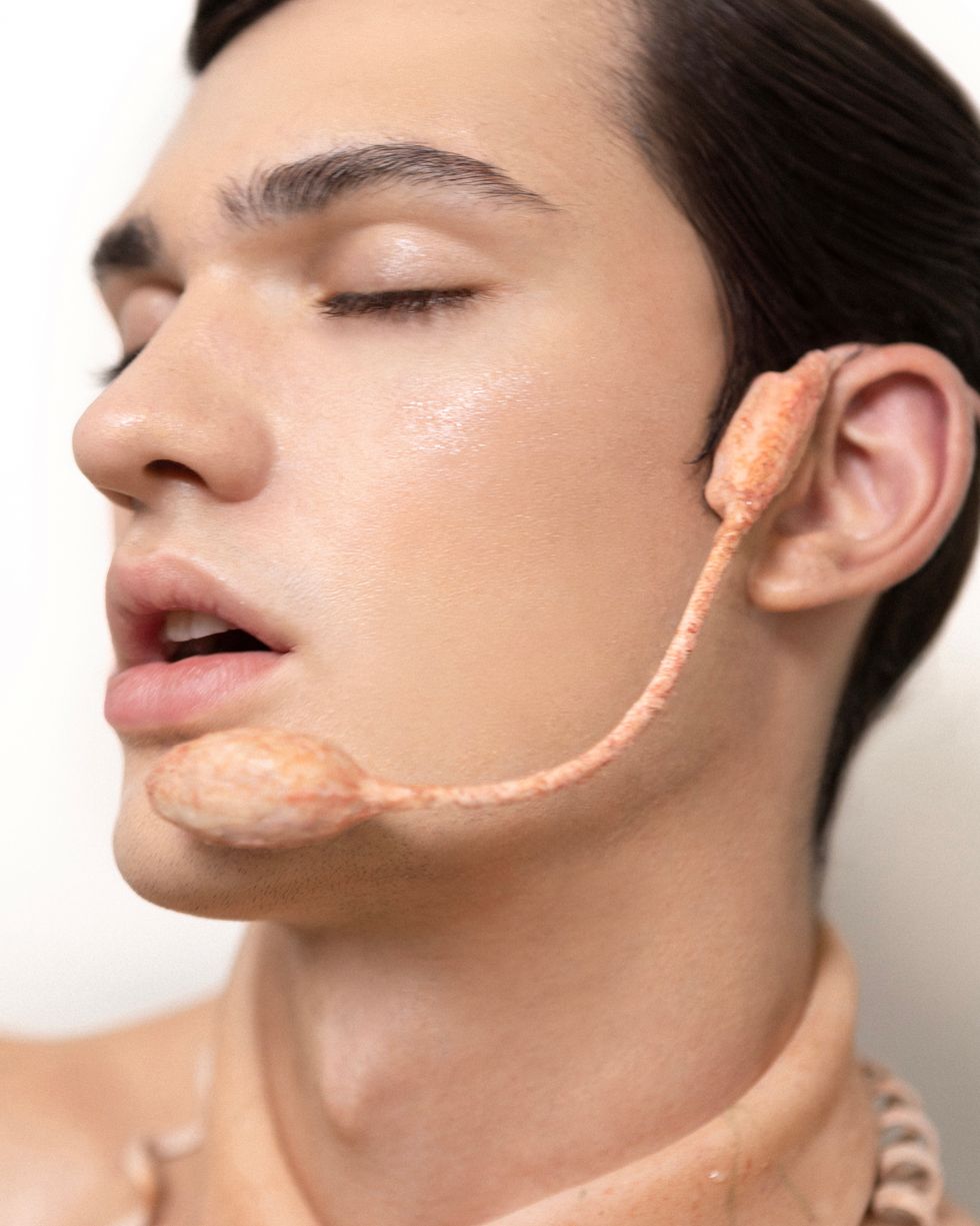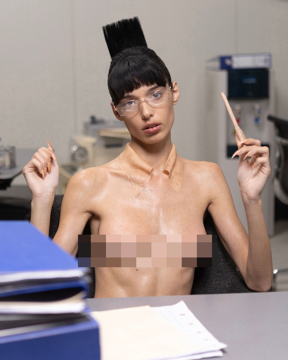 "The visual direction of this shoot was influenced by works such as David Cronenberg's film eXistenZ, Terry Gilliam's Brazil and Japanese advertising, particularly the works of Yuni Yoshida, where humor, irony, and cultural references are prominently used," Suvić tells PAPER.