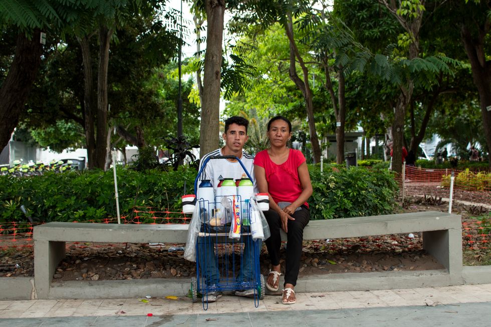 Jenny and Anderson sell coffee on the streets of Barranquilla. The husband and wife fled Venezuela two months ago and now live in a room with other Venezuelans in the city.