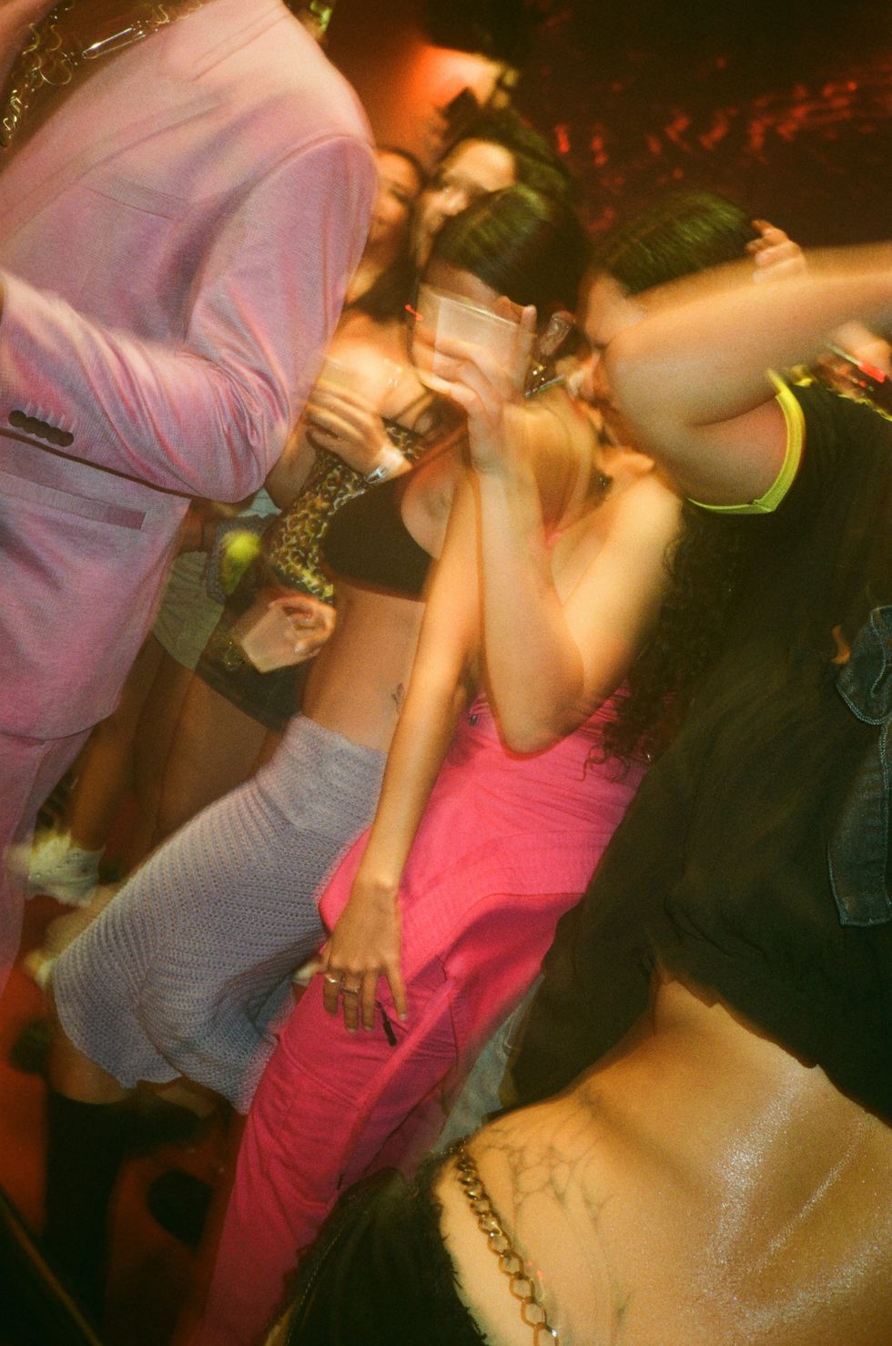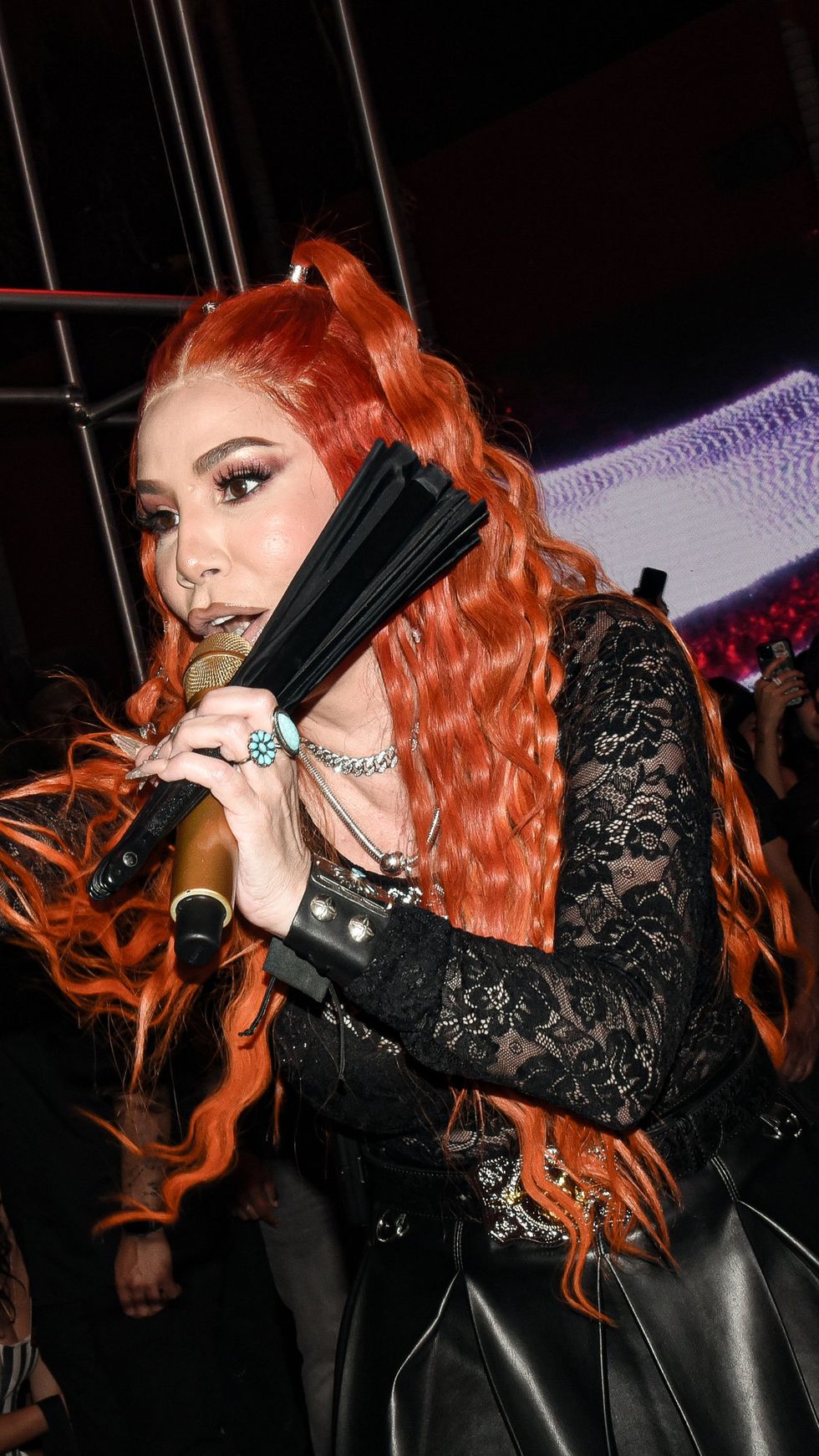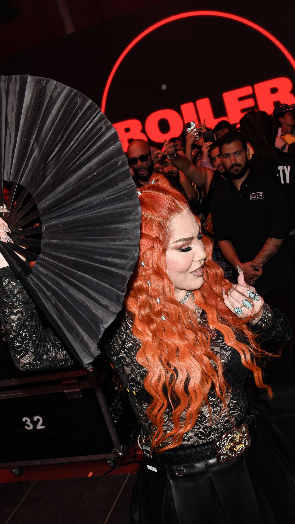 As the sun began to set in Miami, guests lined up to enter the garage long before doors opened. Once inside, they could take photos with a life-sized replica of the VCARB car, customize hats with spikes and gears, design a T-shirts with a selection of different screen prints and colors from artist Jordan Watts, or airbrush a HUGO scent bottle. But it didn't take long for everyone to make their way to the bar as DJ sets started pumping for cocktails and Cuban snacks. The crowd was like the extended family of Brooklyn's own nightlife crowd of drag queens, DJs, hosts, producers and club rats — who all threw ass while La Goony Chonga and Ivy Queen took the stage.