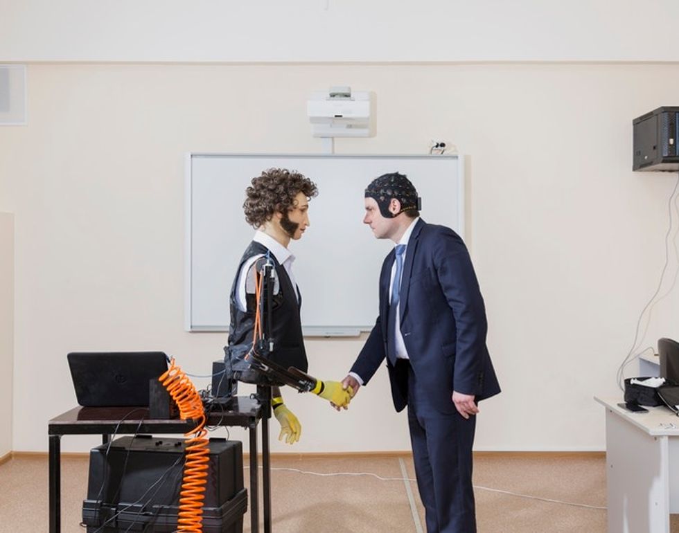 Then there's the people who see robots as humanity's future, such as the team behind Sophia, the world's first robot citizen and an ambassador for the United Nations. These folks are less concerned with augmenting our abilities, and more with seeing where robotic members of society can take culture. Ai-Da, the first robot artist, opened her first gallery exhibition last year. A manufacturer of made-to-order anthropomorphic robots, copied from photographs or portraits, like one resembling Russian poet A.S. Pushkin capable of reciting poetry.