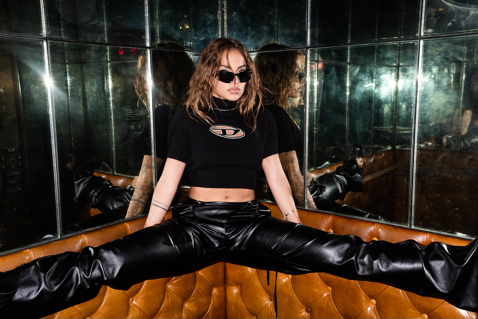 Top: Vex, Jacket: RTA, Jeans: Diesel, Necklace: Heili Rocks, Rings: Milamore, Title of Work