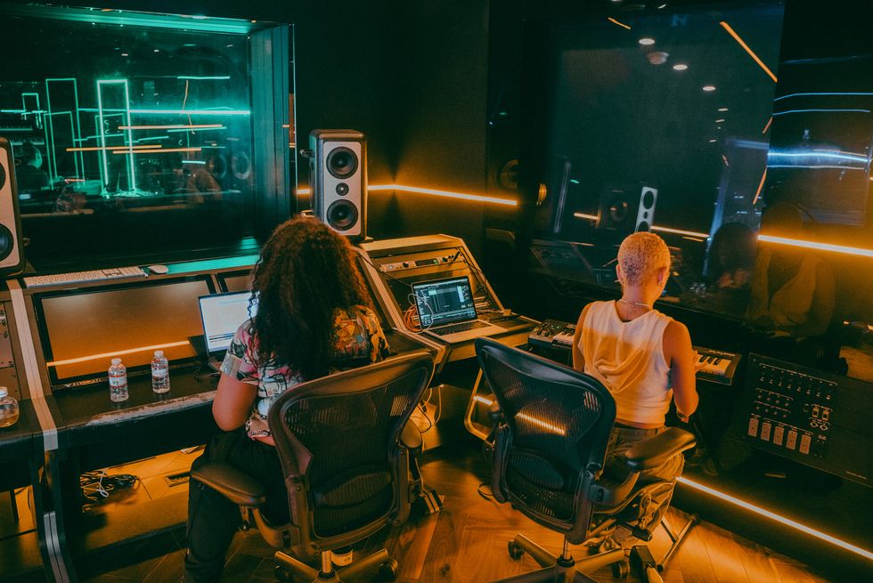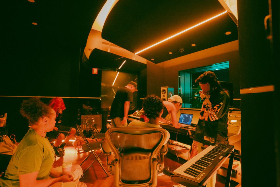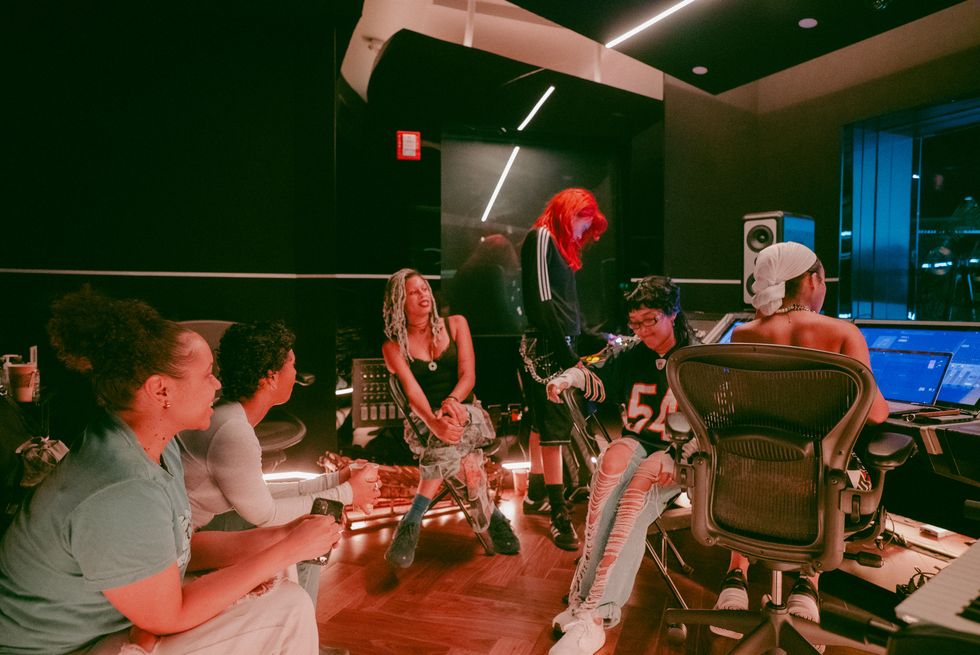 RaeCola: We didn’t really know what to expect coming here, but I think all the people that they brought together, it just feels like really good synergy. It’s such a place of people wanting to just create. We’re also hungry being here, and we’ll stay in the studio ‘til literally 3AM and they kick us out. I feel like the variety and genres they brought together have also brought out different elements within each of us, which is really cool. It’s nice when we listen to the tracks and you can hear everyone’s sound within it, and I feel like it’s only been four days. I don’t know if it’s the feminine energy, but I think that definitely plays into it a lot. It’s unique. I haven’t been in a studio session like this ever in my life, where there’s all females, you know?