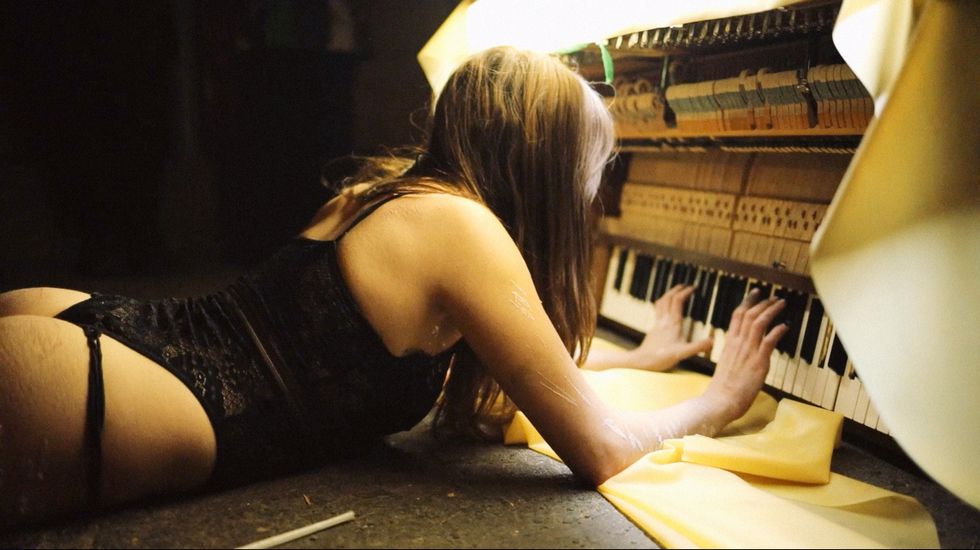 When the show began, Joni emerged from a creaky staircase in the corner. Moving like an insect down the shaky steps, she proceeded to set herself down atop a bed of speakers. There, she was asleep, or waking, or dreaming, or all of the above, intently holding a microphone and cooing, her voice mingling with her own cunning composition that played from the speakers beneath her. At one point, friends and fans alike stood above her, thin candles in hand, and dripped scalding wax on her lingerie-clad body.