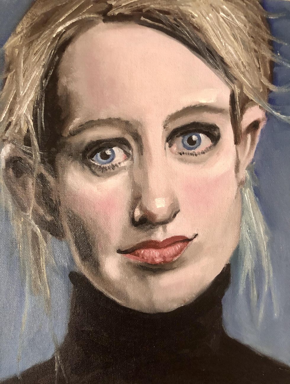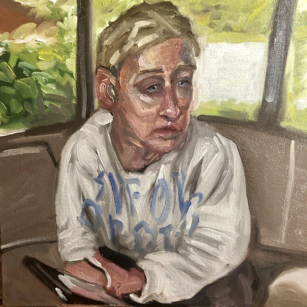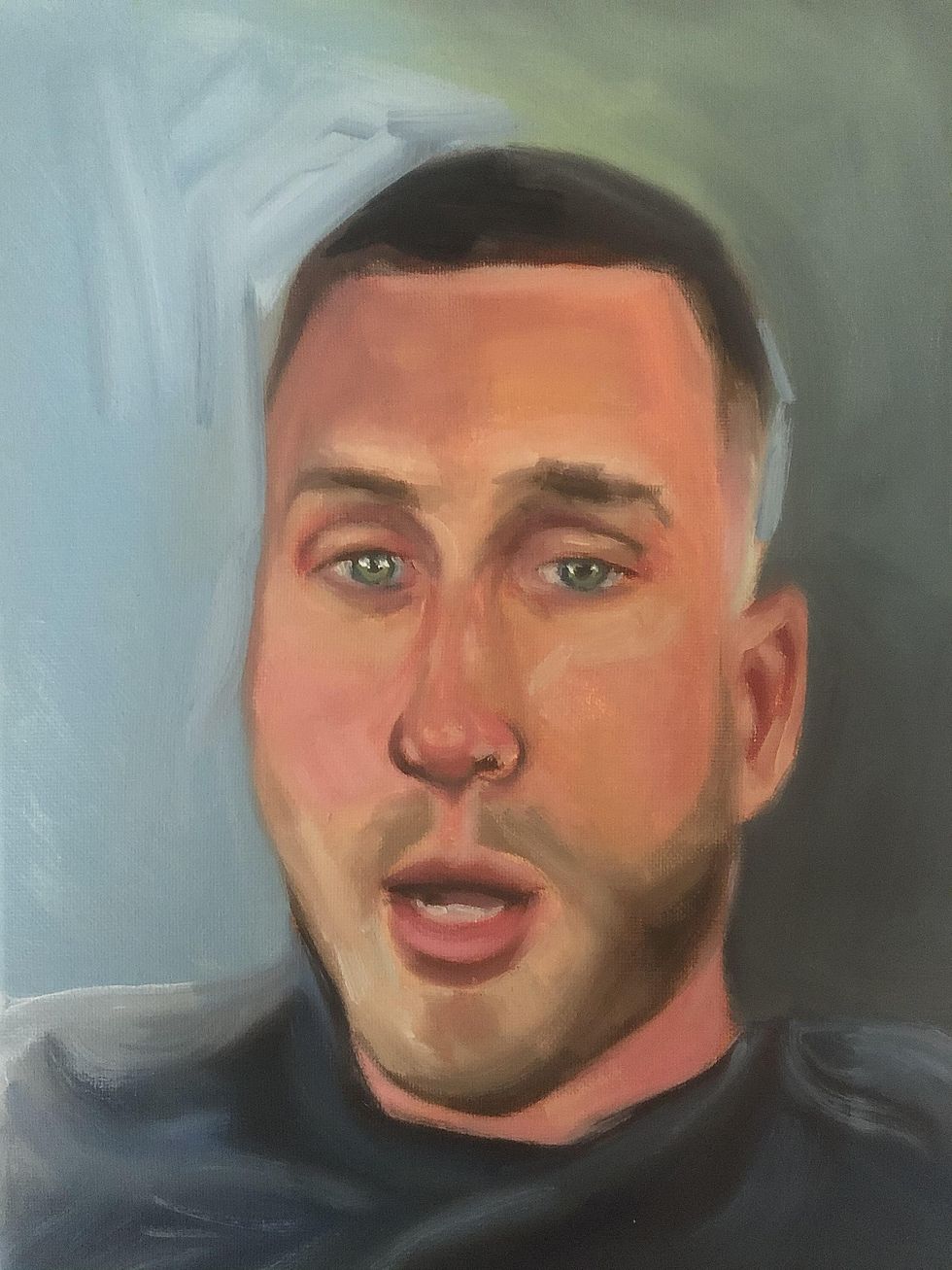 At the very beginning, when Tom Hanks tested positive for coronavirus and then his son Chet — who would then later reappear miraculously during all this — made a video where he was talking about how his parents have coronavirus but that they're OK and everything is fine. He was very calm about it. I found it to be a very calming video. It helped me sleep at night because at that point everybody thought, "Everybody's going to get coronavirus and everybody's going to die." And here was [Chet,] this very strange character that nobody had ever heard of talking about his famous father and how everything was fine. And so the next day I was like, "I need something to paint because I'm going crazy because we're in lockdown." So I decided to paint him, almost as a gesture of appreciation because I found him to be such an interesting person.