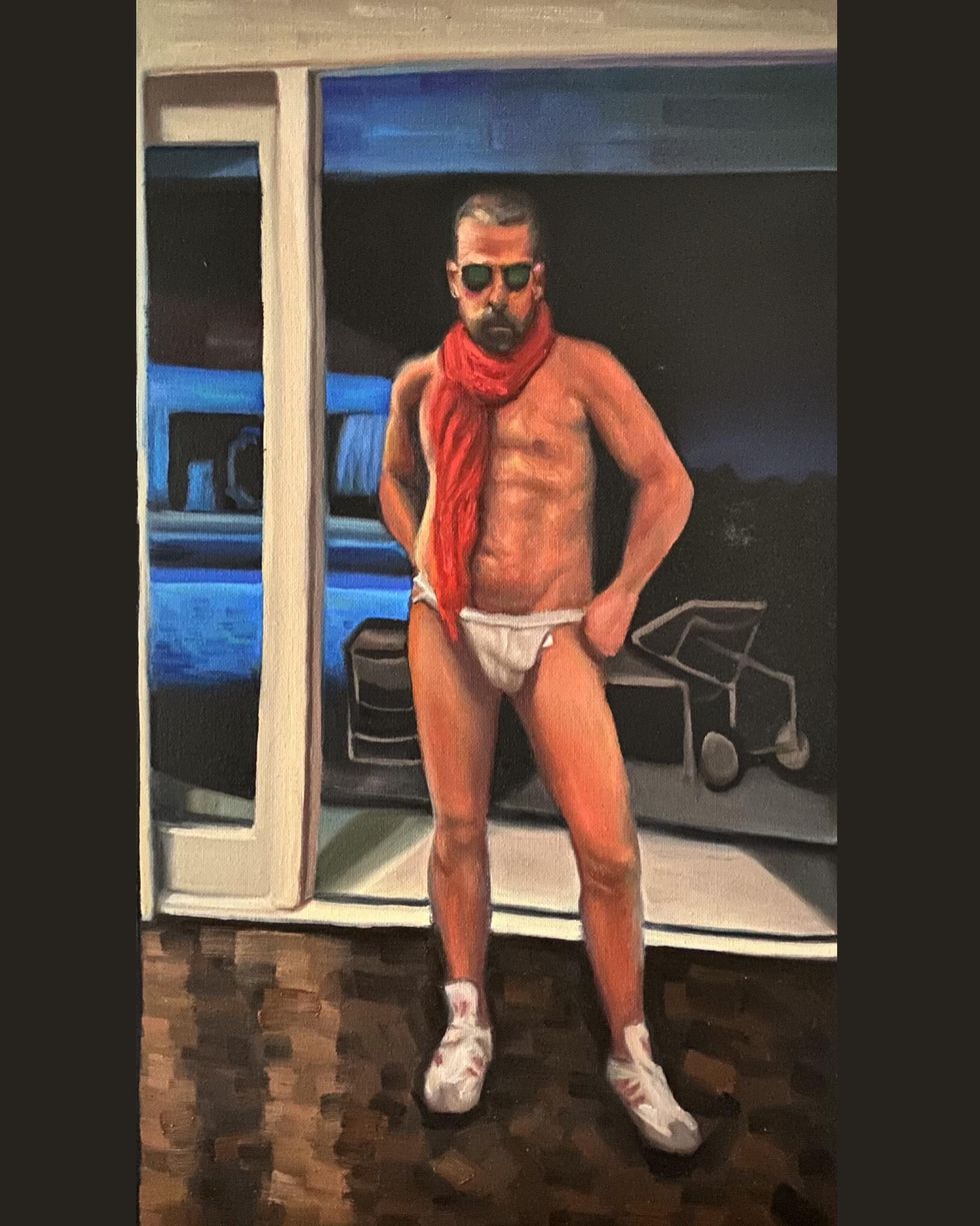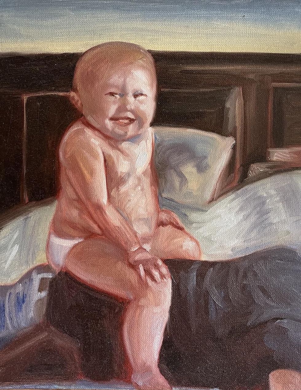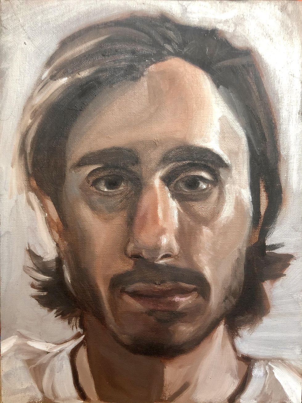 At the very beginning, when Tom Hanks tested positive for coronavirus and then his son Chet — who would then later reappear miraculously during all this — made a video where he was talking about how his parents have coronavirus but that they're OK and everything is fine. He was very calm about it. I found it to be a very calming video. It helped me sleep at night because at that point everybody thought, "Everybody's going to get coronavirus and everybody's going to die." And here was [Chet,] this very strange character that nobody had ever heard of talking about his famous father and how everything was fine. And so the next day I was like, "I need something to paint because I'm going crazy because we're in lockdown." So I decided to paint him, almost as a gesture of appreciation because I found him to be such an interesting person.