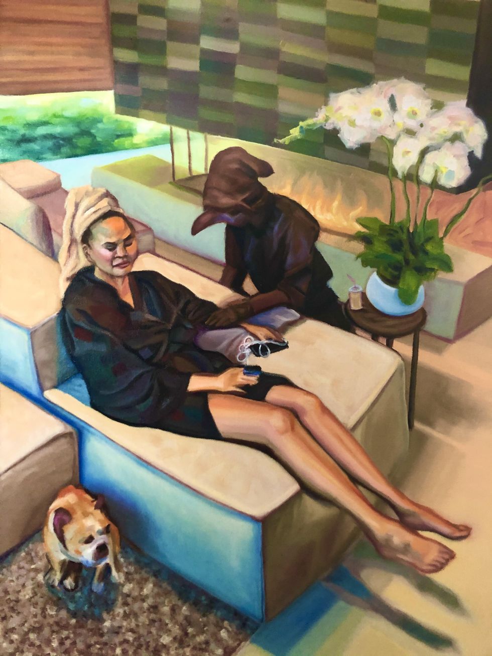 I feel like people might be confused as to why somebody like Adele would be included in a show with portraits of Ghislaine Maxwell and Jeffrey Epstein — I don't think I'm creating a moral equivalent between them. To me, the Epstein saga is the zeitgeist that we live in. It's the maximum realization of the logic of wealth and power. All of these moments that we process [are] under the shadow of what Jeffrey Epstein represents, which is sort of the machinations of money and power and corruption. It removed a certain veneer of legitimacy over the elite, in the same way that watching celebrities bunker down in their mansions during coronavirus tarnished their image as benevolent rich people. There's a lot of understanding that, materially speaking, we are not all in the same boat. We are not all in this together. That was the message that a lot of famous, rich, normally ostensibly well-liked people kept trying to say at the beginning of this pandemic — and that message of unity fell flat.