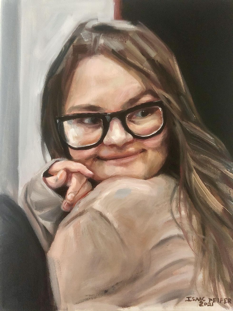 I think of it as sort of a pre-haunted portrait. [Historically,] so many subjects of portraiture are painted because they're being honored for greatness [but then] they end up being somehow exposed as villainous in some way. Villainy and power are so intricately entwined, where I think that all portraits have the potential to become haunted by this sort of darkness that's inherent in the subject. With painting Jeffrey Epstein, [I'm] basically pre-haunting my portrait by saying, "This is the type of person who has power in our society. This is the type of person who would get a portrait. How does that make you feel?"