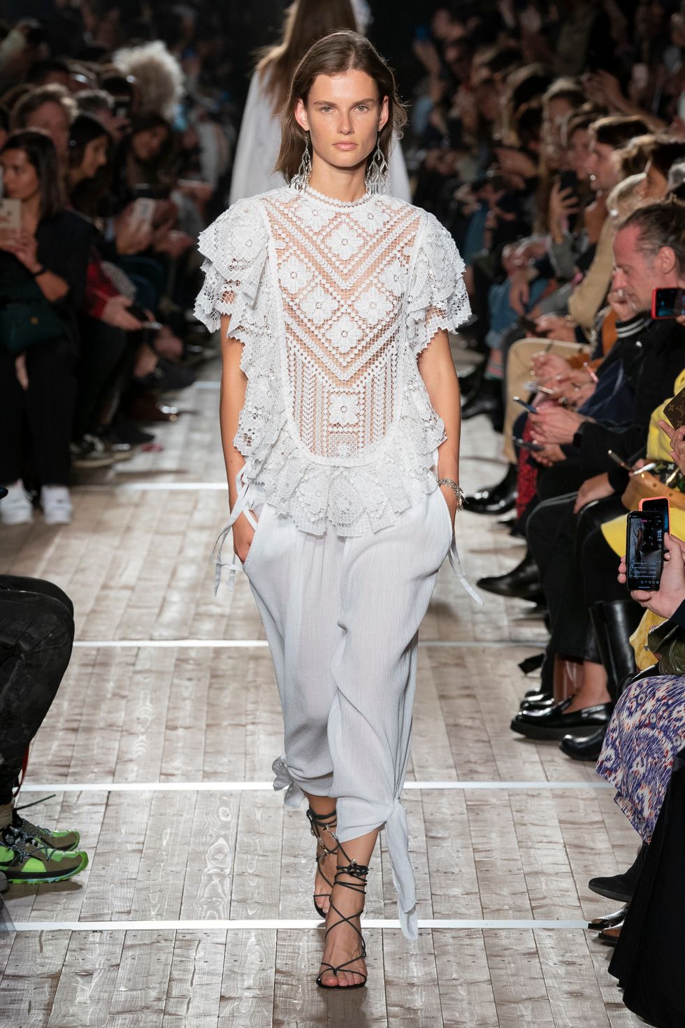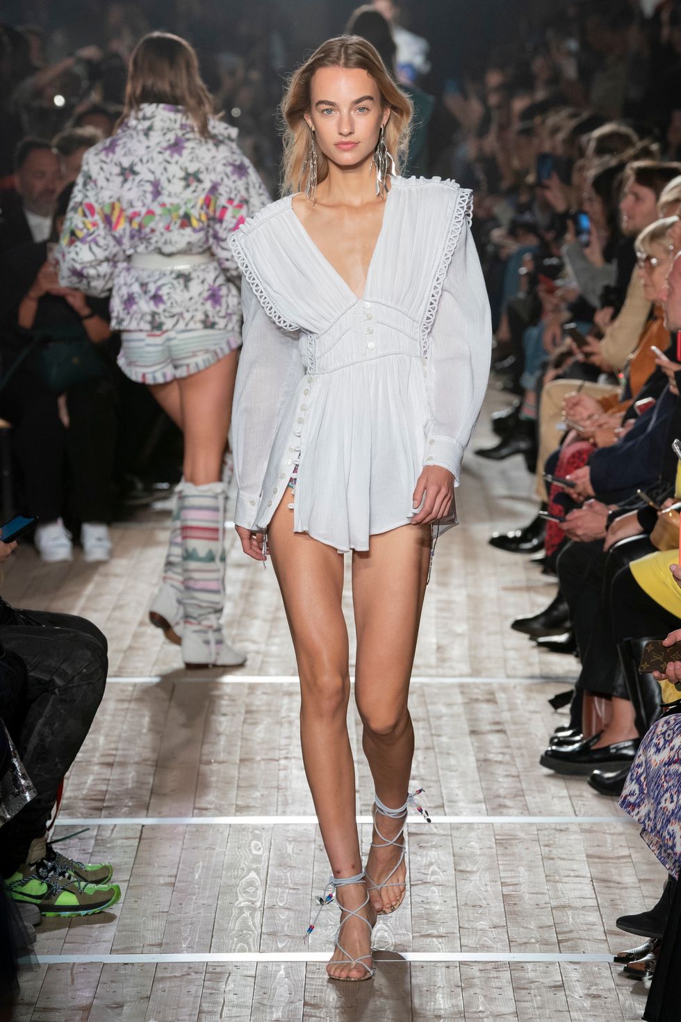 Isabel Marant makes clothes for the quintessential Parisian cool-girl that everyone wants to be. They also never look out of place at a music festival, with boho details and hippie design elements a staple in every collection. This season was no exception, thanks to the skin-baring, tribal-print clothes that are both casual and sexy at once. From the micro denim shorts to lightweight crochet dresses, Coachella-goers will have plenty to pick from next year. Here's everything you need to know about the Spring 2020 collection.