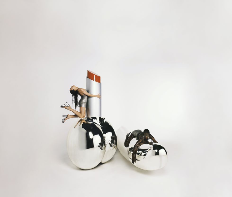 They really did. The lipsticks (dick-sticks?) come in a sheer black shade, Vanity, and a bright red, Cardinal, housed in a gleaming chrome vessel with dimensions that give it the look of something that might pop out of leather pants in a Tom of Finland illustration. “I wish I could say we did a real-life cast and mold,” says Ffrench. “But alas, it was based on a generic shape. Lots of alterations were made over the weeks to find the perfect balance, and it was very funny to discuss those with our engineers in Italy.” Mercifully, there will be a restock.