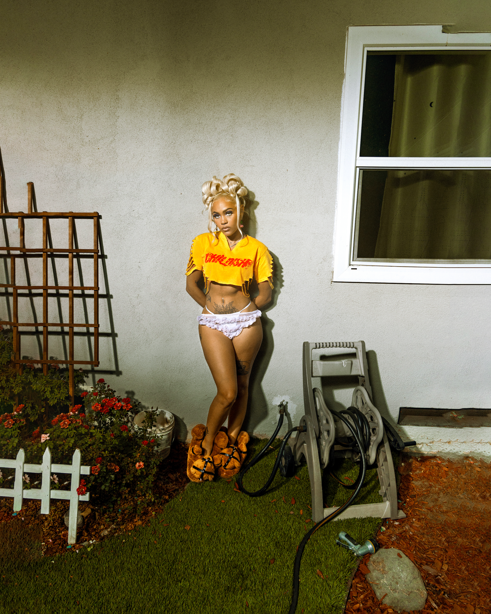 Following the viral success of her 2020 single, "Swimming," with Trippie Redd, IV4 is preparing to release her forthcoming album, Get Rich or Cry Trying — a play off 50 Cent's 2003 breakout and subsequent acting debut. "Stroke," then, is a reflection of what's to come next, from her seductive vocal delivery to ambitious high-concept visuals ("Expect greatness," she promises PAPER).