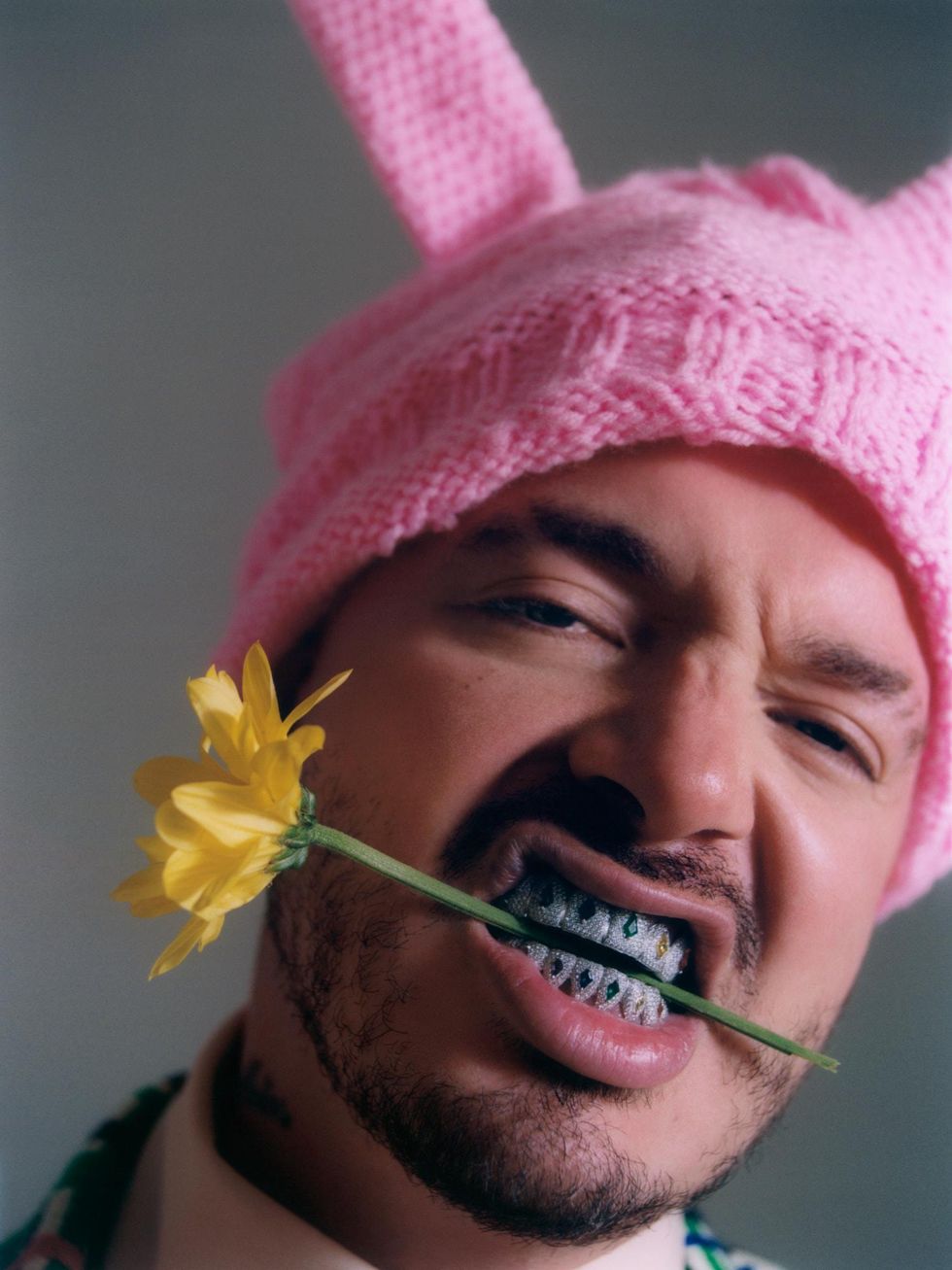 Mask: Gabrielle Schwan, Jewelry: J. Balvin's own