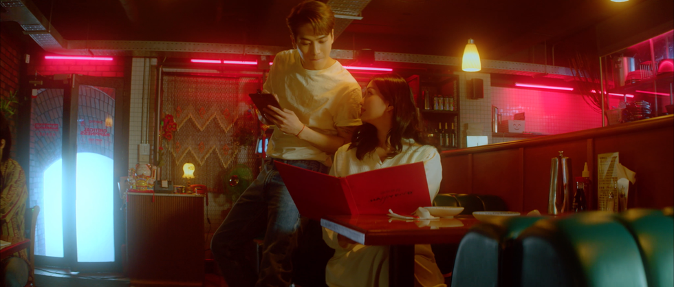 "This isn't my first time directing, but I got to explore new methods I never tried before. Like flying a recording drone indoors in a small restaurant set," Wang tells PAPER. "I wanted to create cinematic movements that had a fresh feel to them and that adds to the story I'm trying to tell."