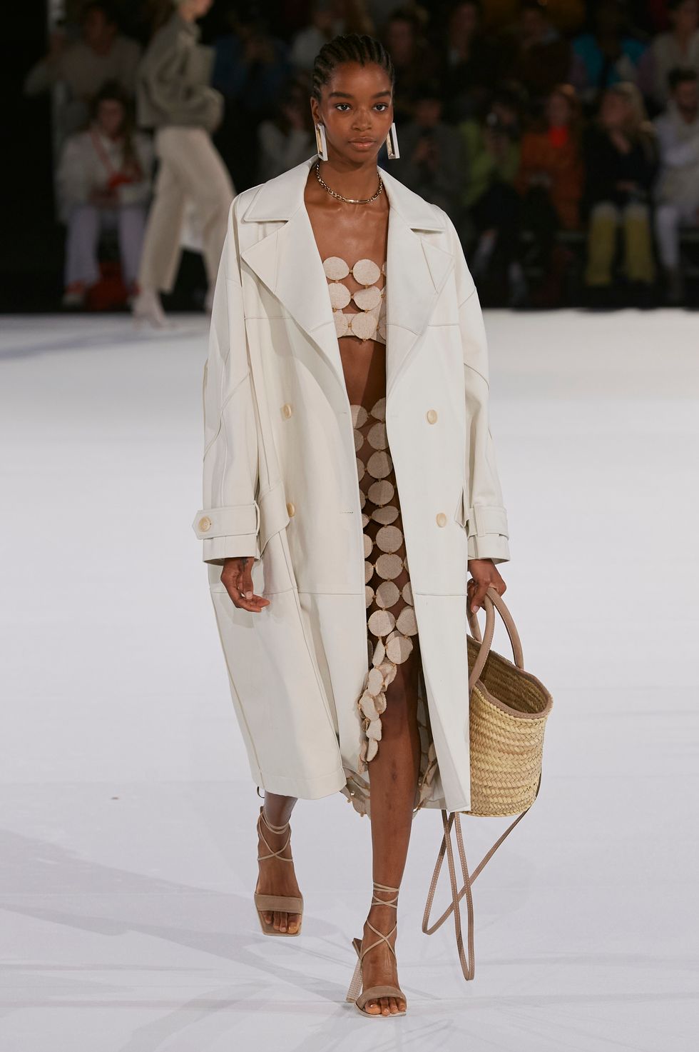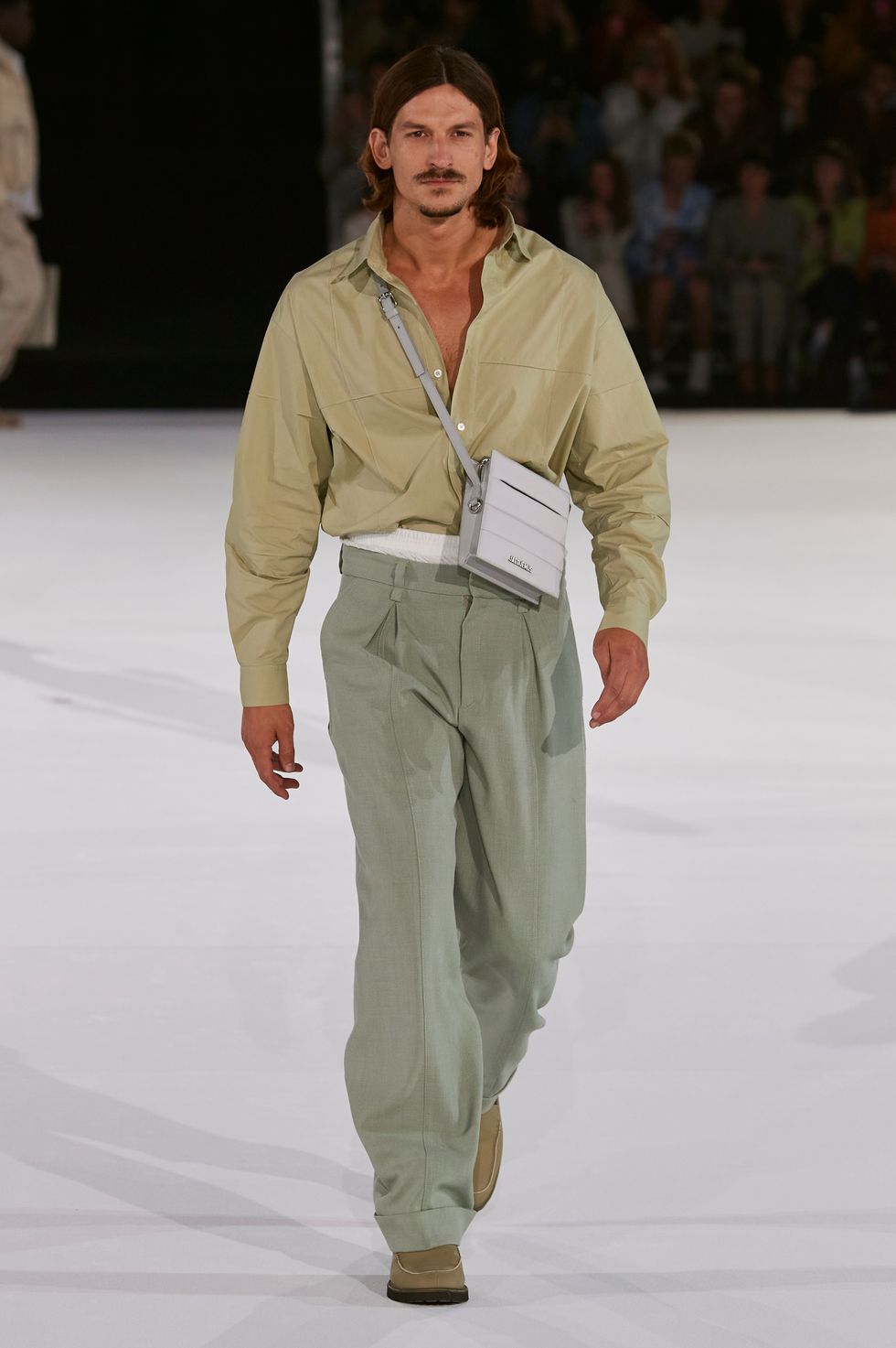 After a successful one-off showing last season in the lavender fields of Provence, Jacquemus returned to Paris after announcing the brand will show co-ed collections on the men's schedule moving forward, hence the numerous women's looks presented. Back at the gates, showgoers were getting rowdy as they tried to push and shove their way in once the gates finally opened. (I overheard some guests used fake invites on their phones to get in, which went unnoticed by security detail.)