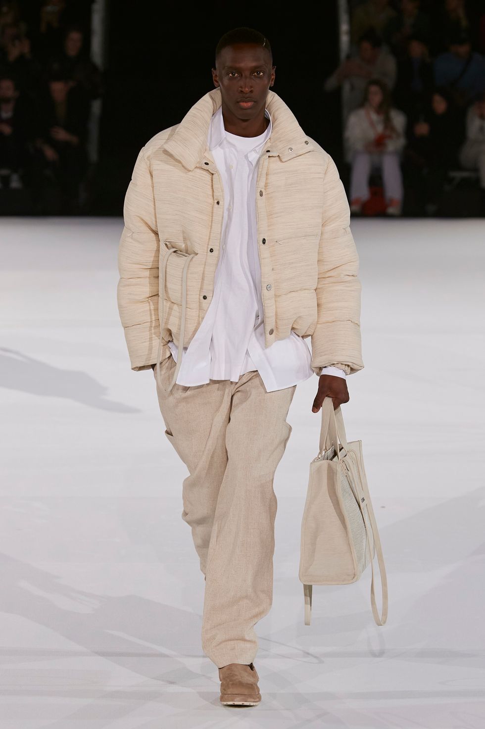 It wasn't even a half hour until the doors were slated to open before huge hordes of fashion types, many of them seemingly under 20, had eagerly gathered around for the next Paris Fashion Week show. Some passers would likely think the crowds were there for a big pop concert of sorts — the venue was the La Defense Arena, a stadium that seats more than 40,000 — but they would be wrong. The fans were there for Simon Porte Jacquemus, who has arguably attained rock star status in some fashion circles in just a few short years.