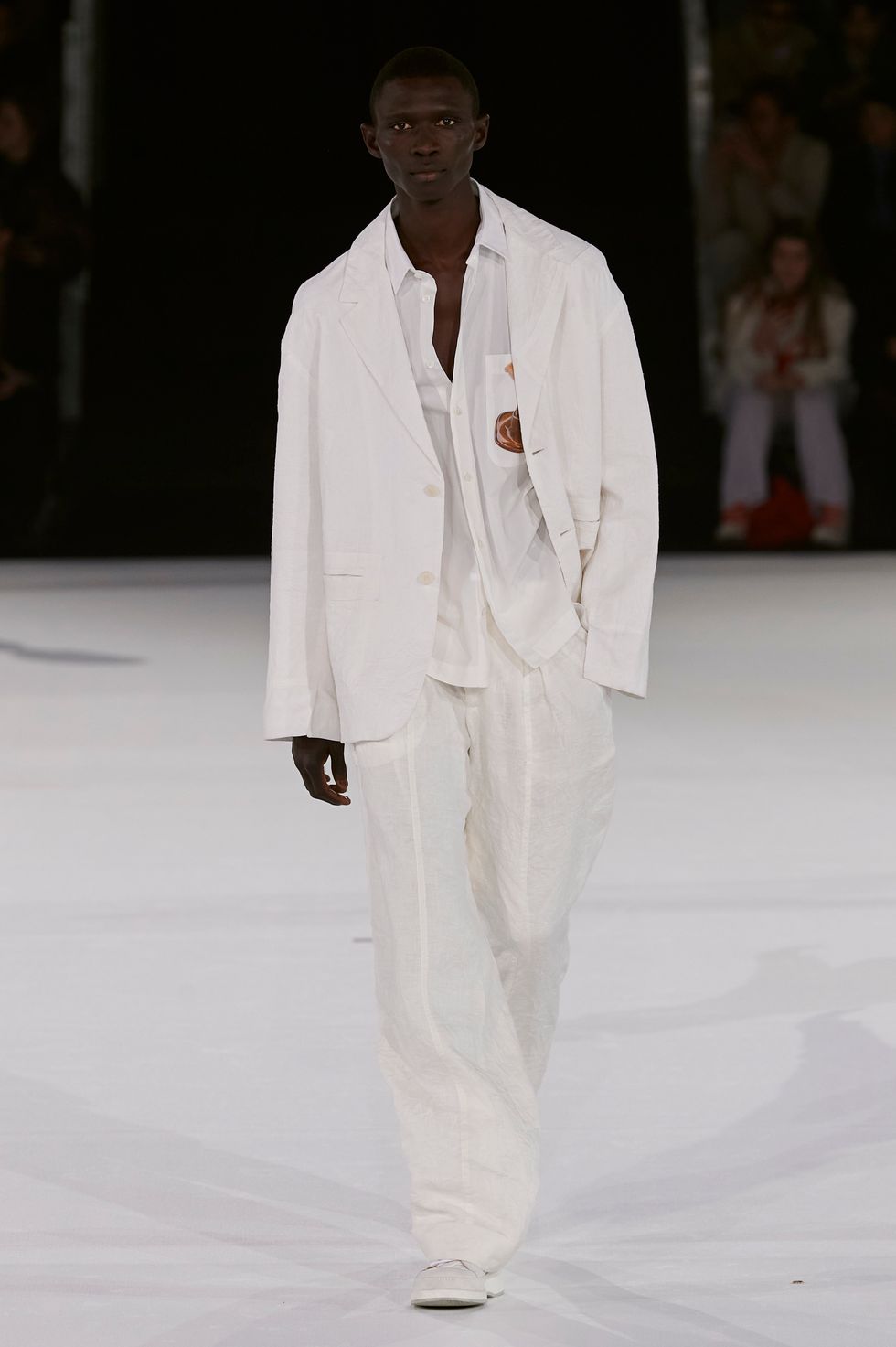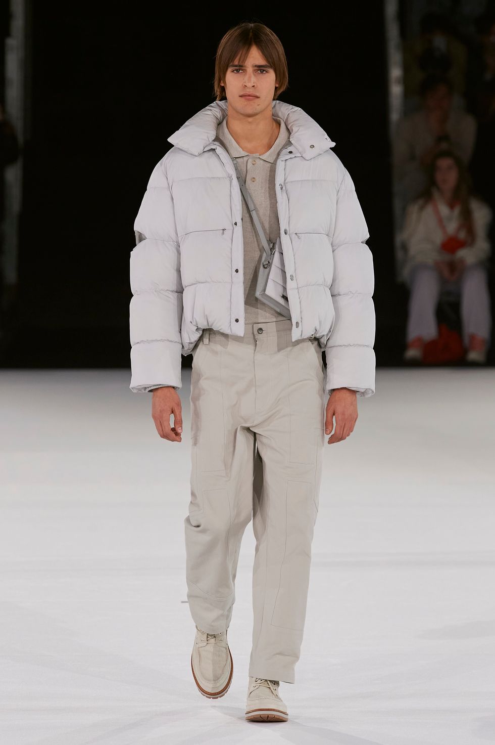 For the men, it was a continuation of the country-boy meets South-of-France aesthetic he's developed since first introducing menswear a year ago. Loose silhouettes, baggy trousers and cargo shirts dominated the lineup, a sharp contrast to their sexier female counterparts. After Vittoria Ceretti closed the show, all of the models emerged and traced around the entire space before a beaming Jacquemus came out for his final bow, looking every bit the rock star he's been made out to be.