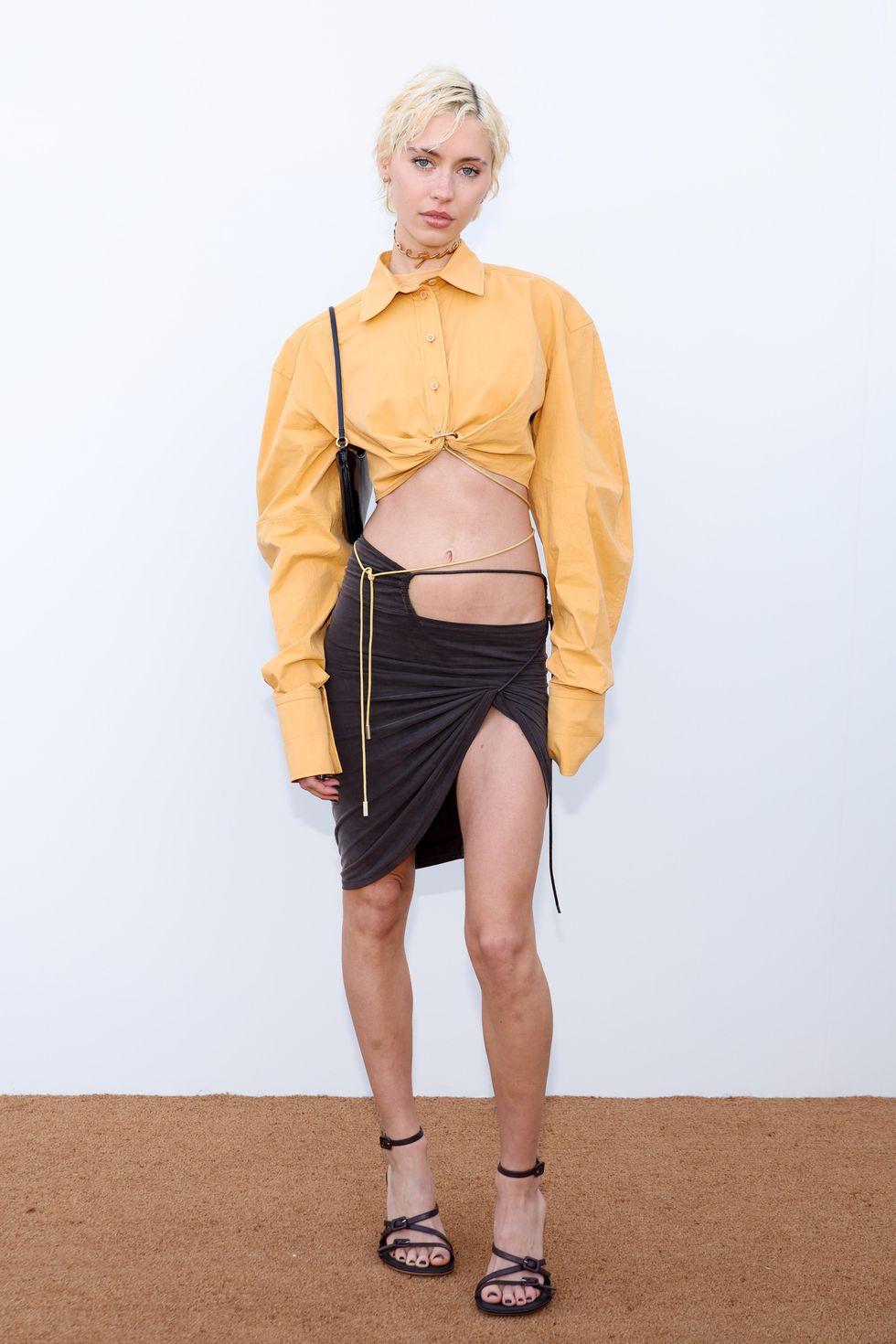 The below freezing temps outside Paris today didn't stop the celebs from making their style statements at the Jacquemus show, including Christine Quinn who wore nothing but a sheer leotard and wrap skirt. *insert "I'll do anything for fashion" meme here*
