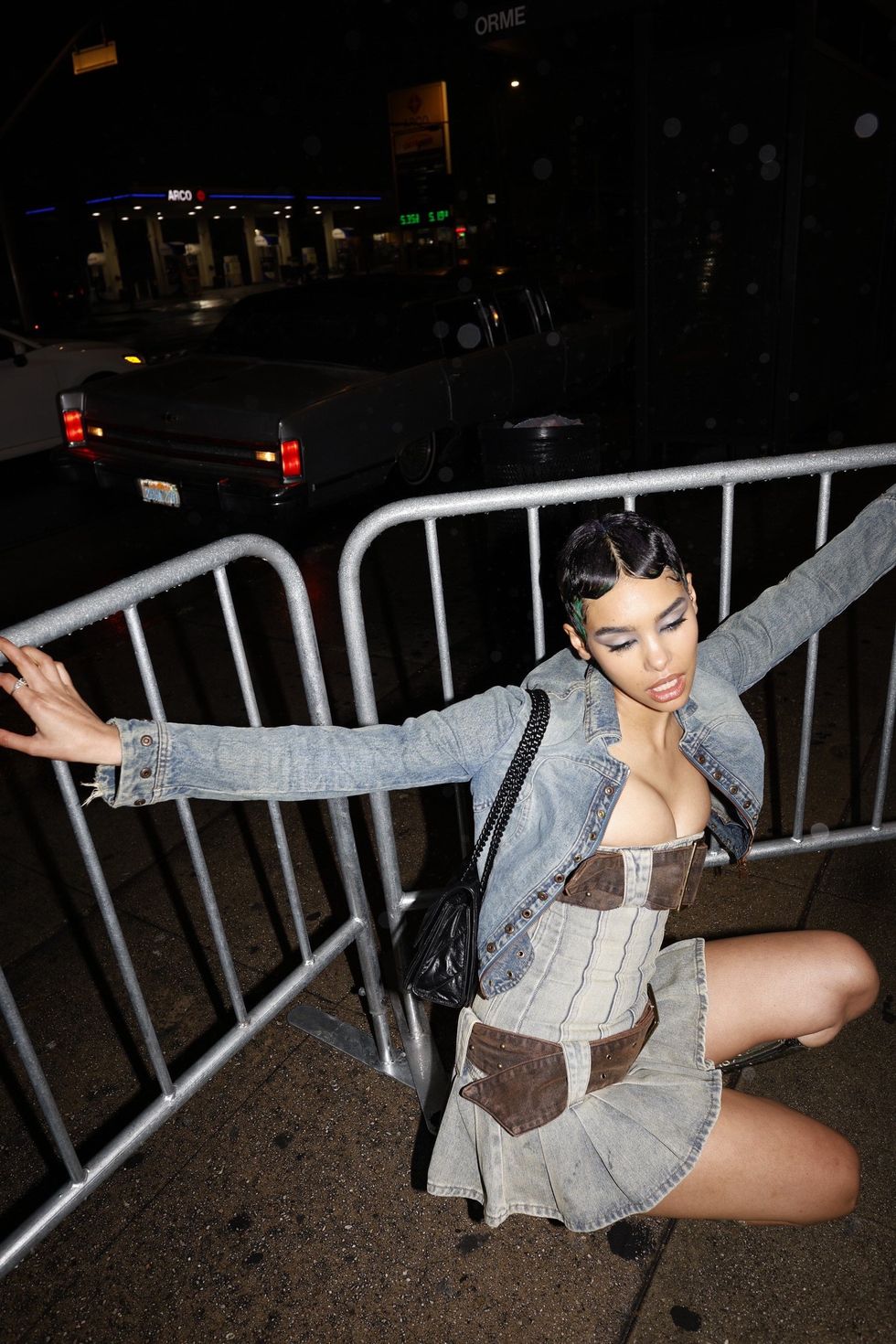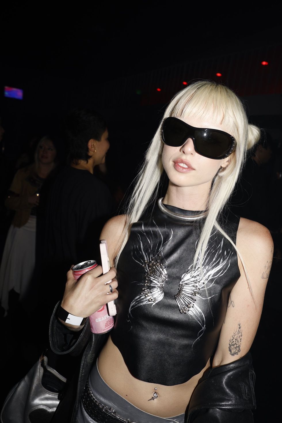 Nearby, NYC pop princess Miss Madeline whips her red hair, twirling with Yves Tumor and TikTok’s Goddess Boys as The Cobrasnake slithers around bodies, unleashing his surprise camera flash on ravers wearing head-to-toe Jaded London. Perhaps he’s why VIP guest Gia Woods is never photographed without her signature face-shielding sunglasses.