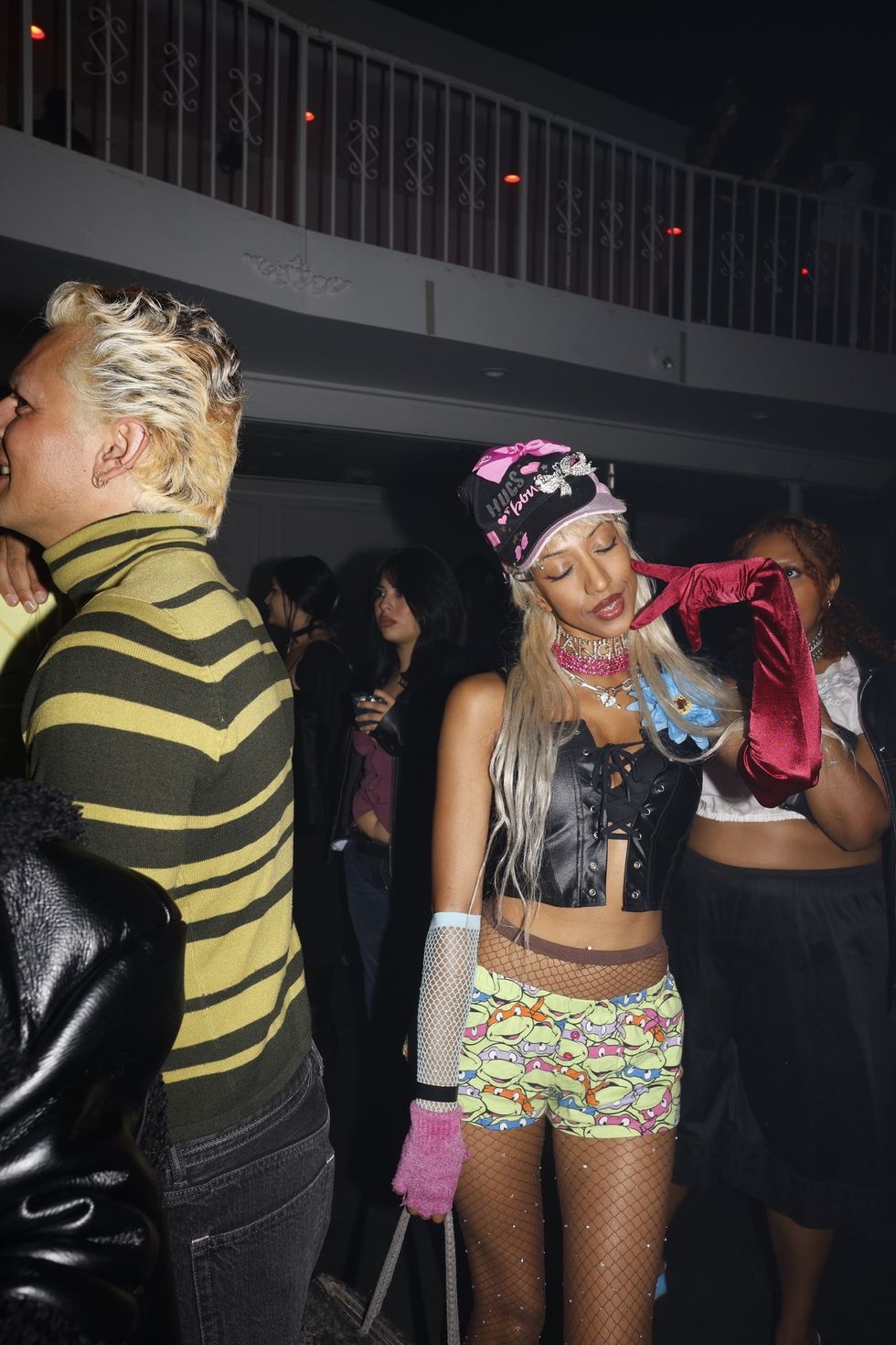 DJ Memphy eventually emerges to play hype girl on stage; a lowkey, hooded Hunter Schafer jumps and smiles from inside the crowd; and everyone from fashion supermodel Alton Mason to rising stars Siiickbrain and Dorian Electra run about, darting between the open bar, outdoor smoking section and bathrooms for critical mirror pics.