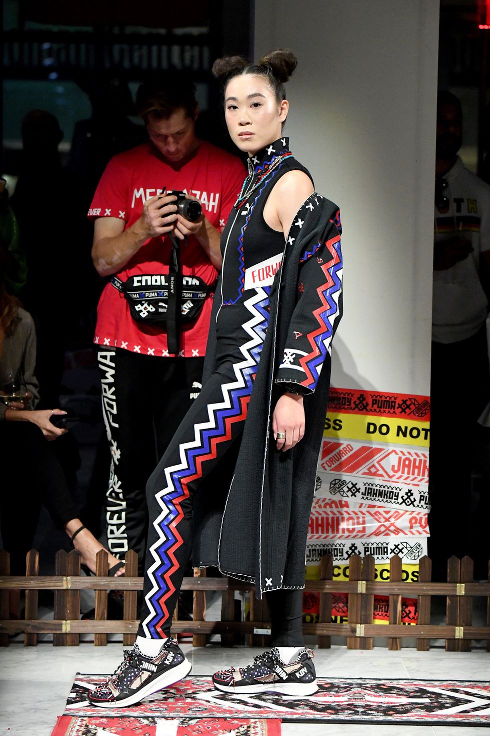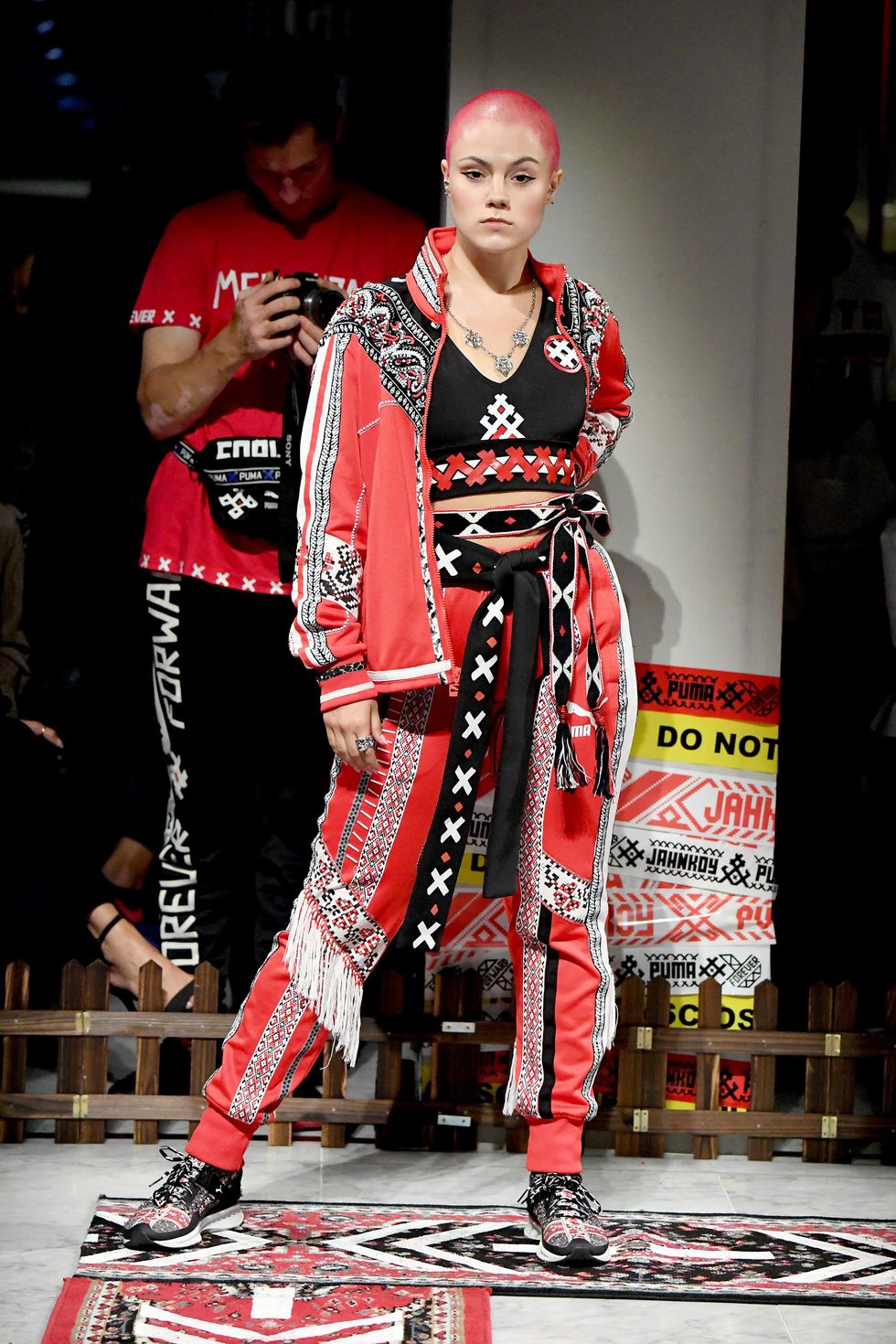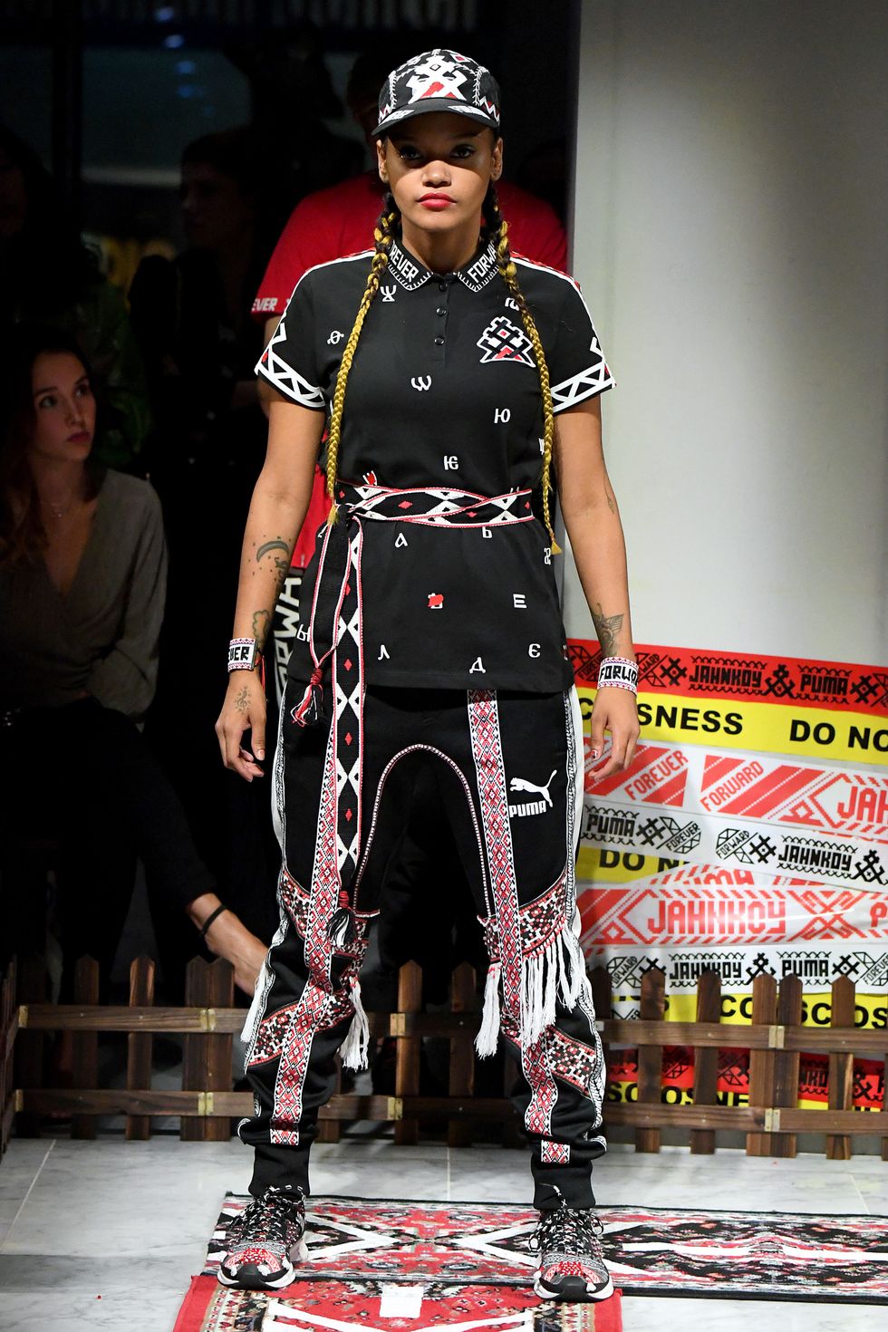 Part of an ongoing collaboration with Puma, ME$$ENJAH:01 sees Jahnkoy embellish classic sportswear with intricate beading, hand-stitching, and vinyl application that draws on imagery from traditional Russian culture, both real and imagined. "The idea was to translate the language of traditional clothing into contemporary everyday-wear," Jahnkoy said. "This was my first project where I realized, 'Ok, I have to use sportswear to bring culture forward,' because that is what we are wearing across the globe right now"