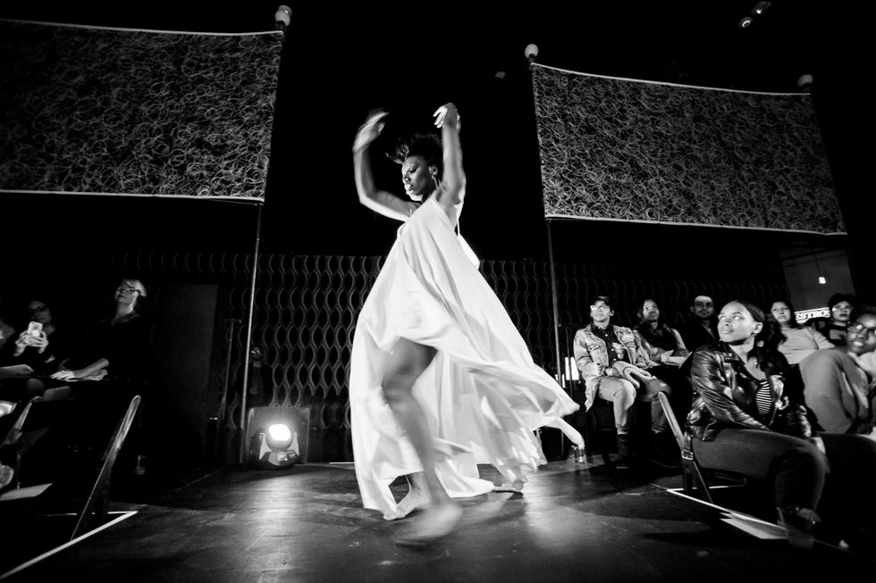 Dancers Chatal' Ashante Hill of Hiplet and Po'Chop delivered fluid choreography to on-screen interludes of Nikki Giovanni performing "Ego Trippin" and that aforementioned Kitt video. Guest performers Jasminfire and theMIND accompanied Woods during "Sun Ra." Nico Segal helped close out the show on Woods' "Baldwin," a powerful thesis that works to sum up Woods' purpose in staging her album in such intimate fashion: "You don't know a thing about our story, tell it wrong all the time," she sings.