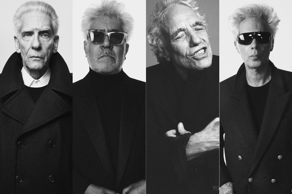 A bunch of silver-haired film directors are starring in the new menswear campaign for Saint Lauren, including Spanish director Pedro Almodóvar, Canada's David Cronenberg (known for his "bloody horror" genre), neo-noir filmmaker Abel Ferrara and indie director Jim Jarmusch. All four were shot by David Sims and star in short black and white campaign clips where the pose in the brand's elegant Spring 2023 collection.