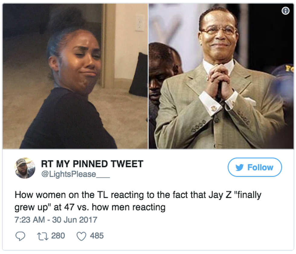 First came the Lemonade, and then over a year later we finally have the tea. Jay-Z's 13th studio album 4:44 was released last night, and it's a dark night of the soul for the rapper as he reflects on his troubled childhood, his wealth, being a black man in America, and the mess he has made of his personal life. Specifically, his infidelities to The Beyoncé, the Solange elevator fight, and his troubled relationship with one-time bestie Kanye West. Before we sip on this arnold palmer together, it's worth mentioning that musically this album is one of the most interesting things Jay-Z has done in years. It's got this gorgeous J Dilla-style production, and lyrically this high stakes personal shit has really given him something to sink his teeth into as opposed to just listing off watch and car brands we're too poor to recognize. Magna Carta it is not.