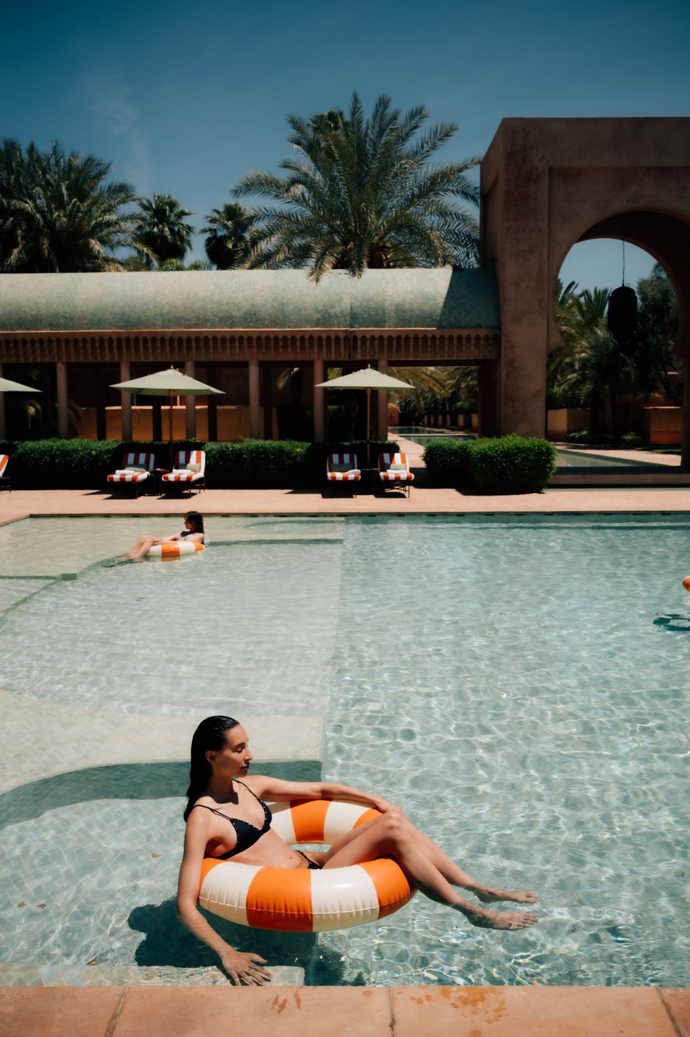 The group of 30 or so actors, models and influencers gathered by Jean Paul Gaultier in Marrakesh to celebrate its Le Male and Gaultier Divine fragrances is young, chic and brash — diverse in their roots and profession but linked by their commitment to being fiercely themselves. JPG has assembled this lineup at Morocco’s lush Amanjena hotel for an unforgettable (and I don’t use that term lightly) weekend of celebratory meals, traditional Moroccan entertainment and even some shopping at the local souk.
