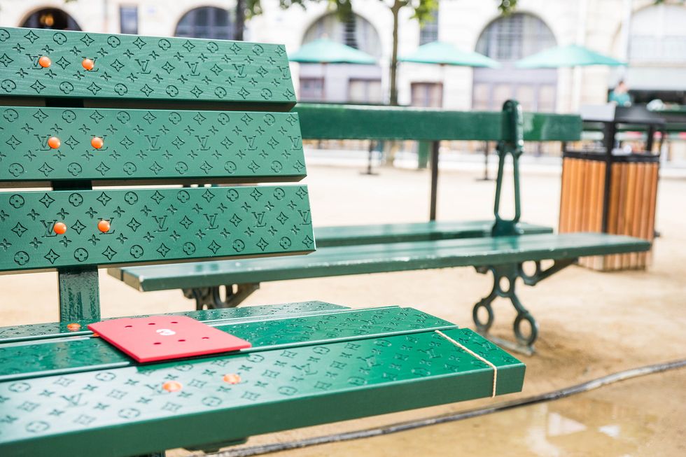 The giant proportions make it so that the user's legs dangle from the seat in a nod to the childhood themes Abloh explored for that season's collection. "We went and surveyed all of the Parisian benches that were designed by famous civic designers over the last 200 years," PlayLab, Inc co-founder Archie Lee Coates IV told Complex. "We found one Virgil loved and reproduced it one and a half times its actual size."