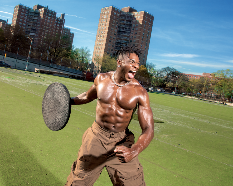JELEEL! knows what people think of him. The rapper, built like a fighter from Baki The Grappler, accepted long ago that his big size and even bigger energy — not to mention the eye-popping backflips — could get him labeled as a gimmick. But to JELEEL!, born Abdul Jeleel Yussuf, none of that matters as long as people pay attention. “I was doing anything to get my name out,” JELEEL! explains. “I remember before I even met with Zane Lowe, I seen him on Melrose Ave. I ran up on him like, ‘Yo, bro, I'm an artist.’ I was doing everything I could just to get my music out, just to get people to notice me.”