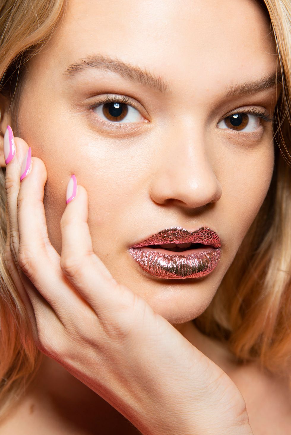 With metallic lips created of flesh-based tones, pinks, and slightly gold-toned reds, there's something undeniable about the beauty trend. Statement-making it might be, but Jeremy Scott might just have debuted a beauty trend among his collection of neon graphic-printed clothing that we're about to see on every girl out there for the next few months.