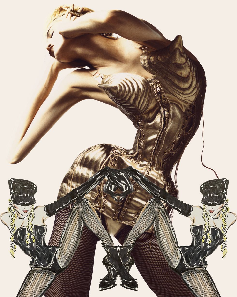 So with these images, I have such a memory. I used to illustrate a lot in high school and I would draw that corset image. We all, as Madonna fans, have this relationship to these images, so I wanted to make sure that I was still honoring the originality. That you could look at it and be like, “Oh my god,” but maybe I'm having a weird dream. That was my approach, and also making sure that they remained as sexy as they were back then and, ultimately, that Madonna was into it.