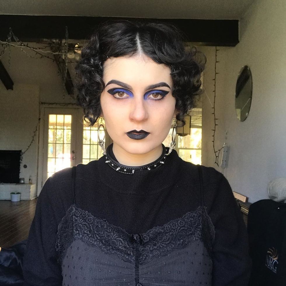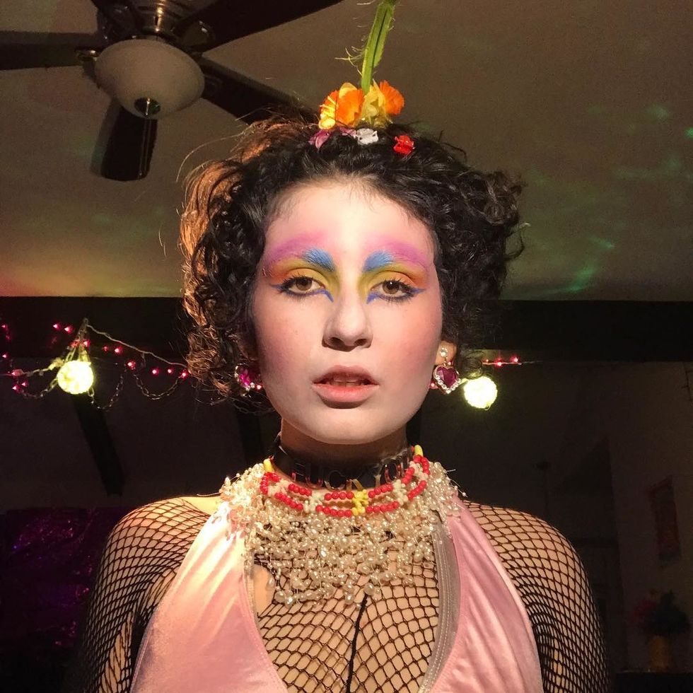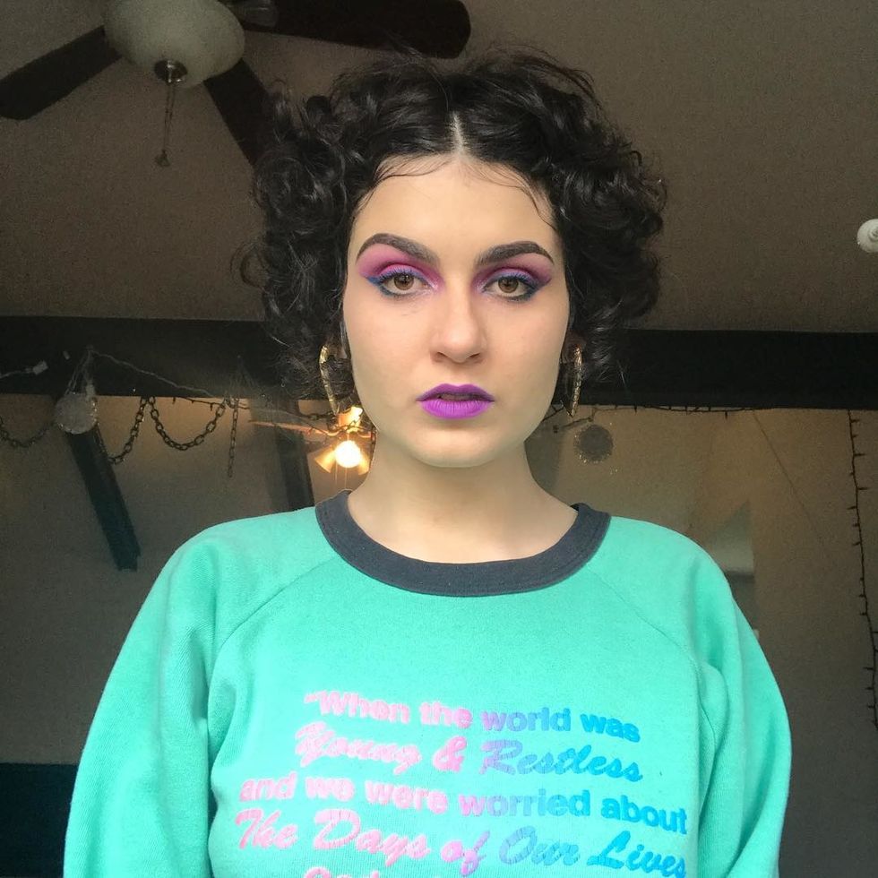 As a teenager, I was pretty isolated. I was basically a goth kid that primarily hung out in their own bedroom, completely absorbed by the Internet. I didn't hang out much with kids my age. I was kind of far out for some people. I spent all my time looking at goth blogs, like, Adora BatBrat really influenced me dressing up real crazy. And I've always dressed up real crazy ever since I was 13. I would wear these gigantic platforms, really dramatic black eye makeup, really theatrical looks. I discovered Nina Hagen and I was like, I wanna look like that! I would also dress up like Siouxsie Sioux. I remember doing a school presentation for English class where you had to dress up as your idol, and I dressed up like Siouxsie Sioux. I even had a fake cigarette that would puff smoke.
