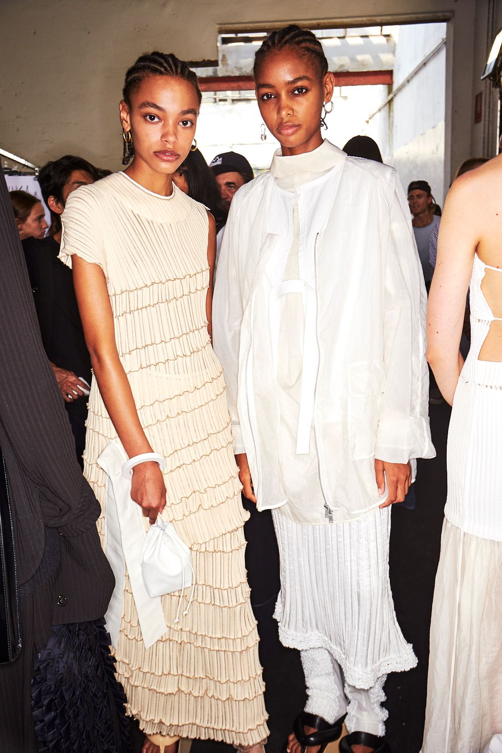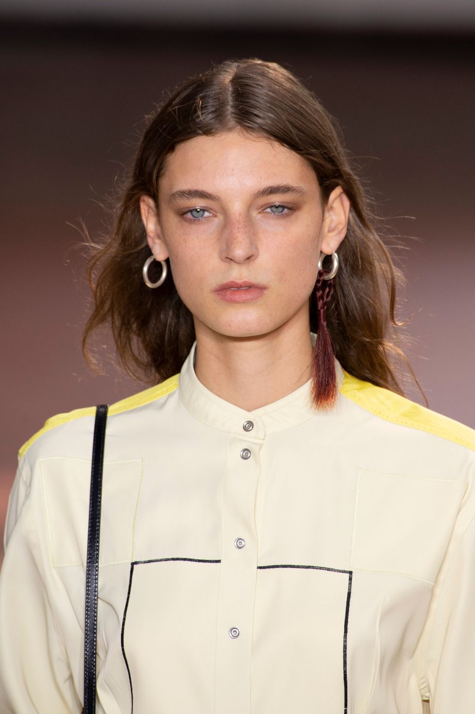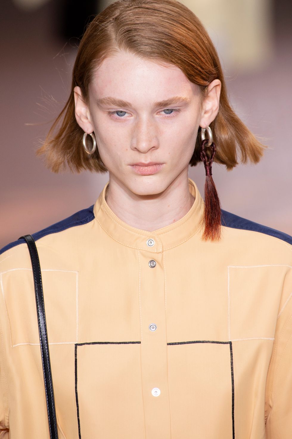 Models gripped handbags the size of their torsos at the waist and had mini coin purses and billfold wallets slung around their wrists and waists. The stark contrast in size was bridged by rectangular box bags and briefcases.