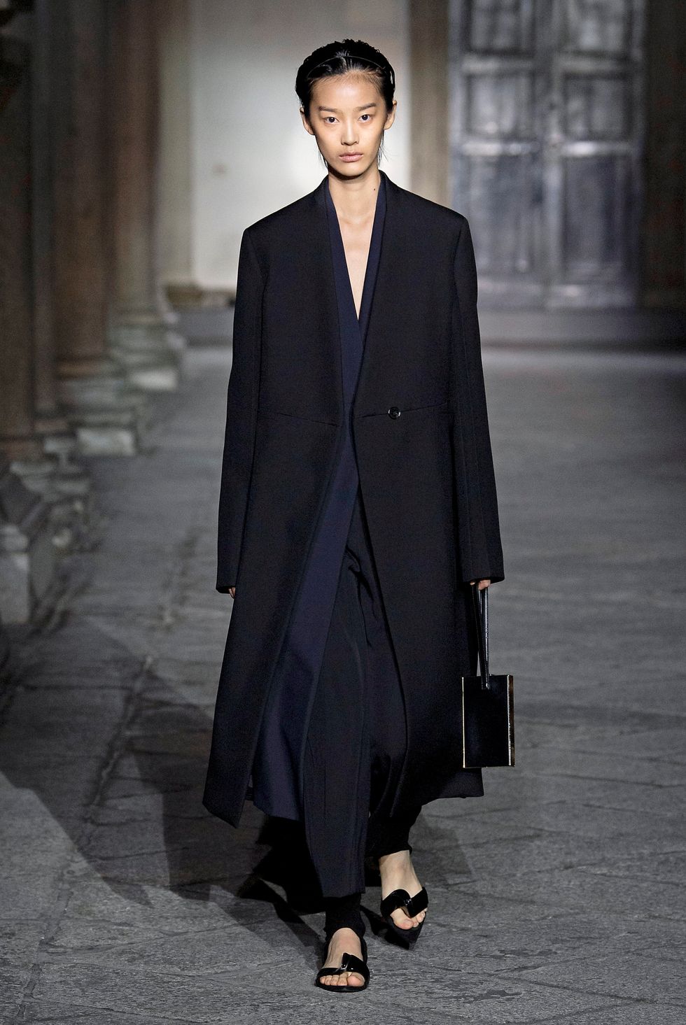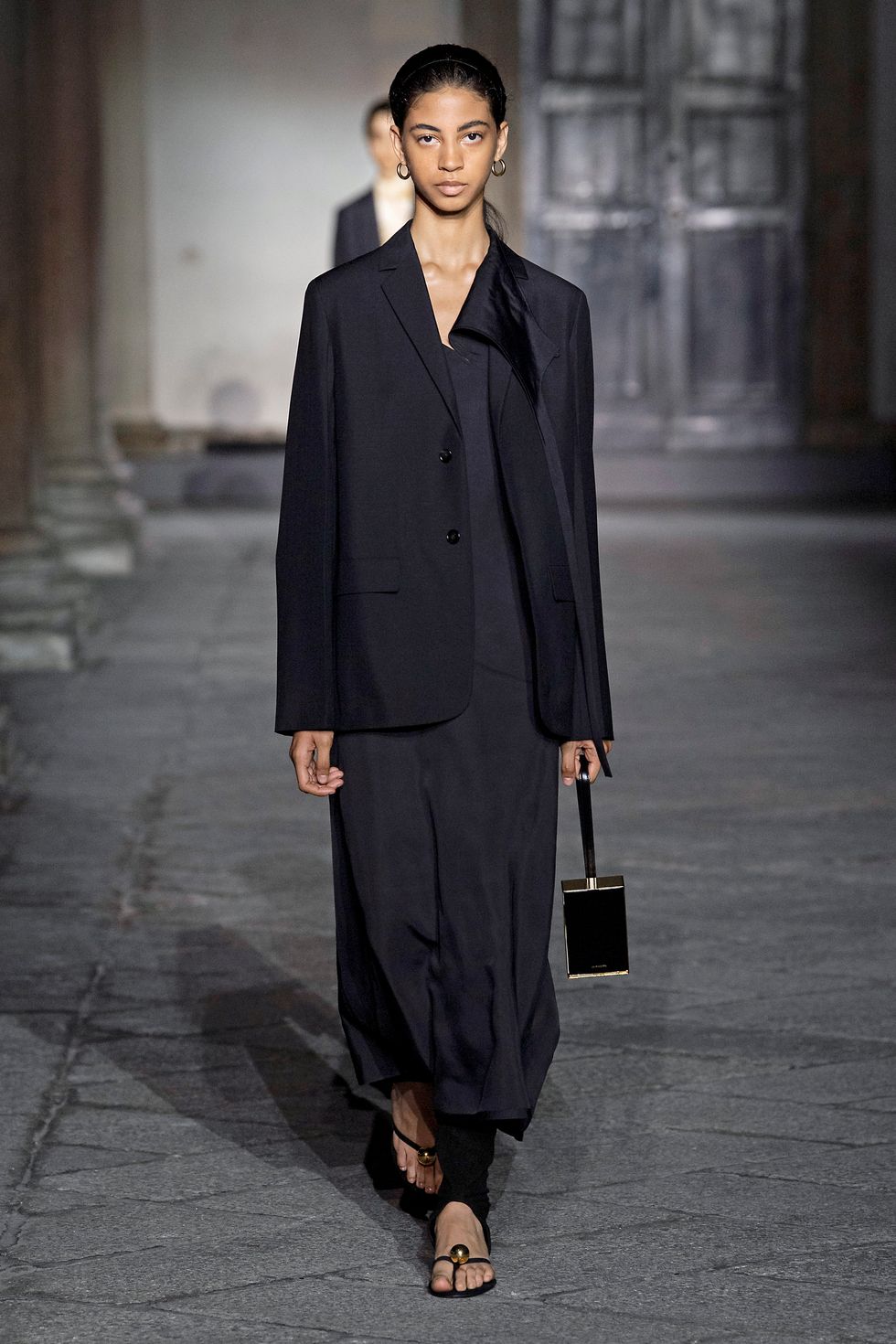 This season was also all about balance, with hard and soft, fluid/structured elements playing out in sharp tailoring over soft dresses and tunics.