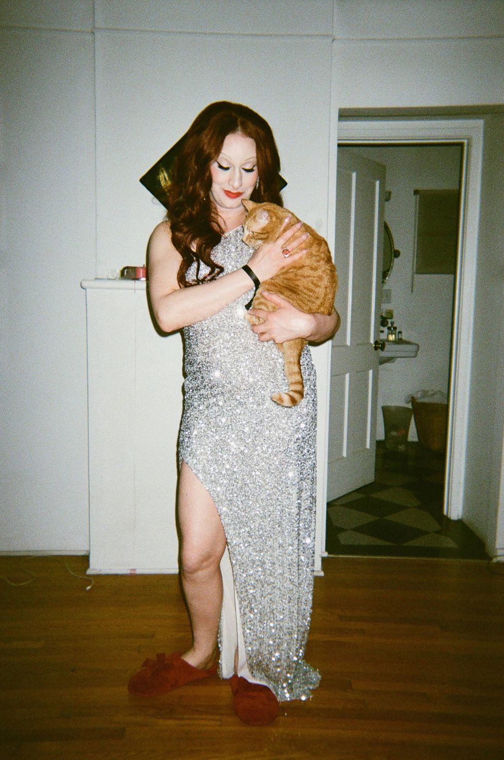 “That’s Lizzie; original name, Jinkx Monsoon. She came into my life through some friends and loving foster parents — she is my shadow (when she’s not terrorizing her sister Myrtle.)