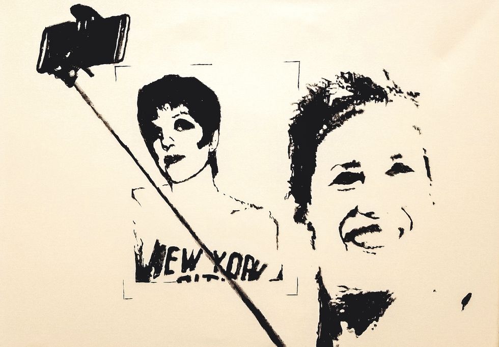 Johan Wahlstrom, Selfie No1, Beth Rudin DeWoody with Liza Minelli Polaroid by Warhol on the wall.