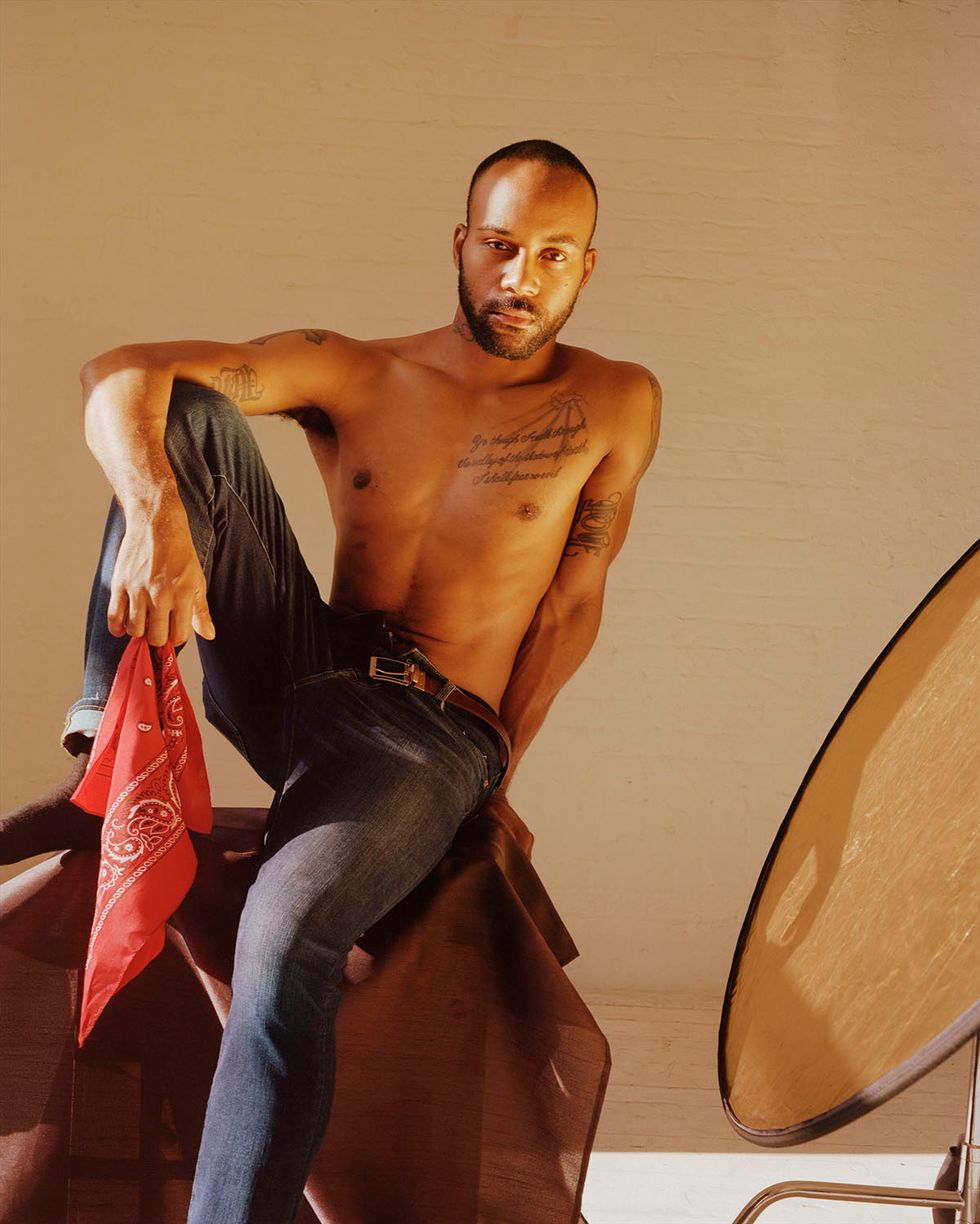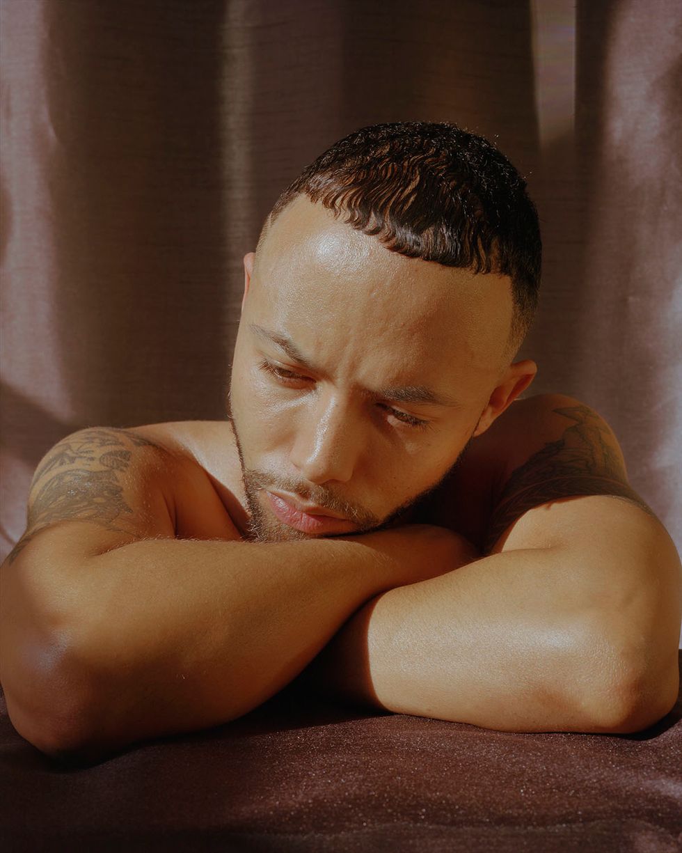 Having only seen those works as a Black queer person, and having not met Edmonds, a Black queer person, I only had my experiences to go on. I thought that my own bias made me less privy to misrepresentation of Edmonds' work, and I was pleasantly surprised to learn I was wrong. Rather than focusing on Black masculinity, and whether or not it is problematic, Black beauty actually plays a much more important role in Edmonds' work, as I saw up close when I met him at ltd to discuss "Tribe." He collaborates mostly with queer artists, some are nonbinary, and all represent facets of blackness not often captured on camera. Ihab, Khari, Ladin, Milton, Brittany, Alex, Tom, Victor, and Justin comprise a range of identities and experiences with a story to tell in each photo. Their aesthetic versatility, framed by Edmonds' use of glowing natural light and warmth invite the viewer to experience an almost feminine softness.