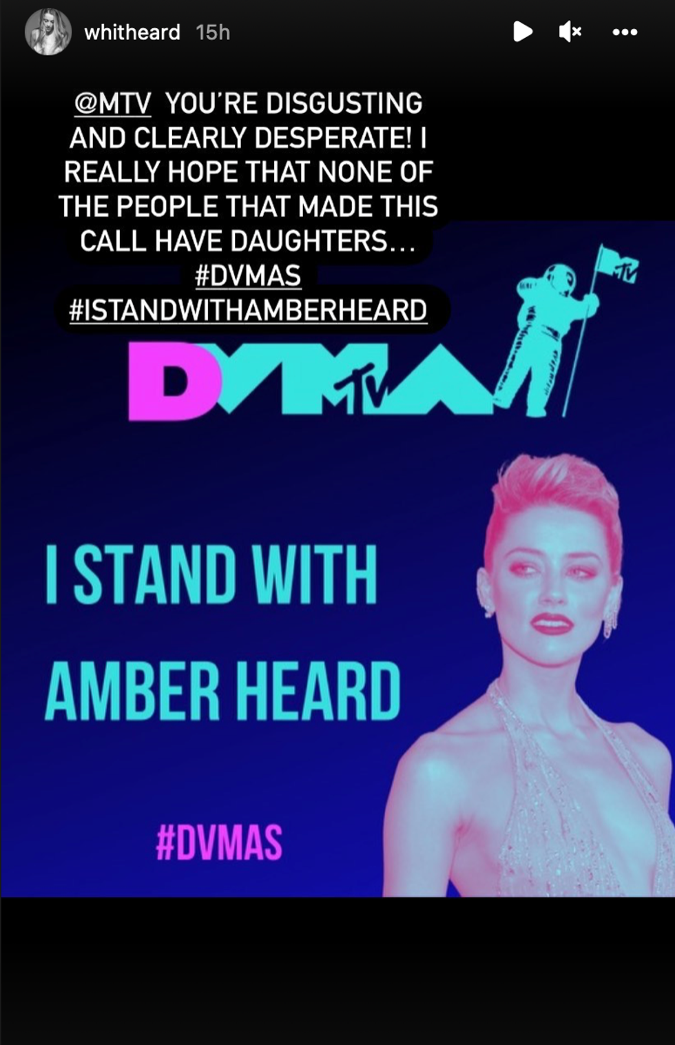 Amber Heard's sister, Whitney Henriquez, took to her Instagram stories to express her disgust. "You're disgusting and clearly desperate," Henriquez wrote over a photo of her sister. "I really hope that none of the people that made this call have daughters."