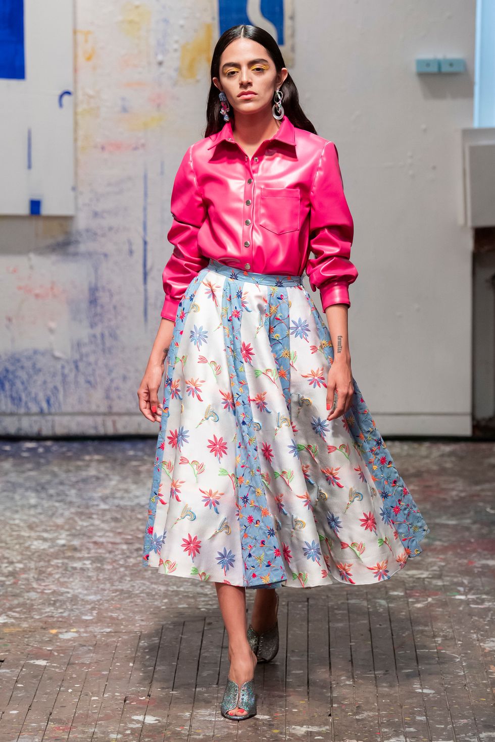 Floral smocks and skirts came in A-line silhouettes that flared toward the bottom. Their humble appeal and simple charm served to highlight the special embroideries and hand-woven techniques.