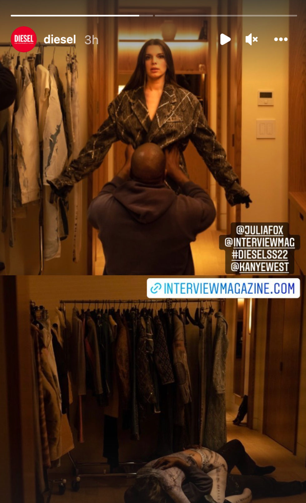 Though Ye has attended a few Diesel runway shows in Milan back in the day, the hasn't exactly been a strong connection between the two. Fox, on the other hand, actually starred in a Diesel campaign for Fall 2020. Whatever the reason, it will be interesting to see if the Ye/Diesel relationship will carry on in some way or form, since he's basically a walking Balenciaga ad these days.