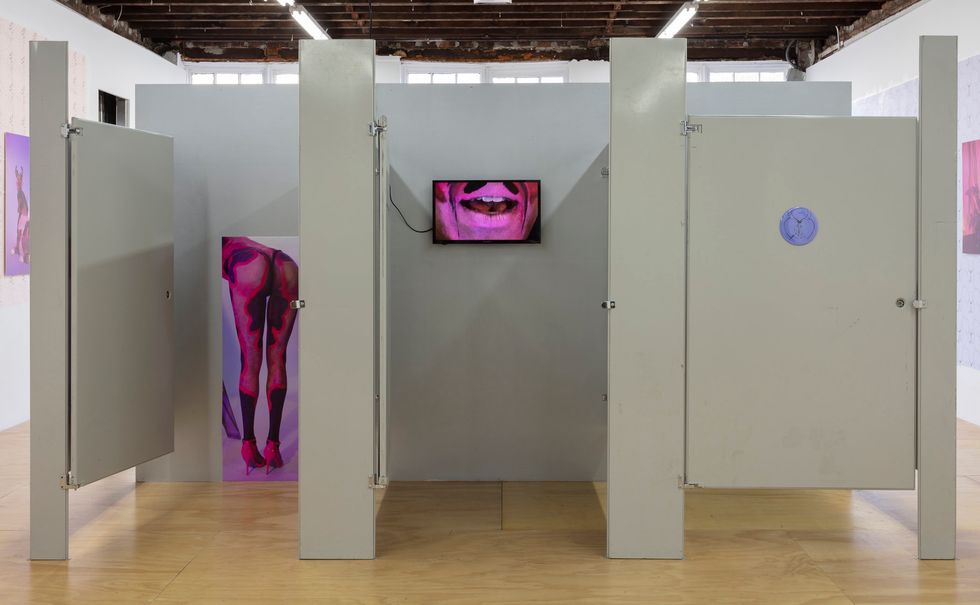 Infertility Industrial Complex: Snatch the Calf Back, showing now in New York's Reena Spaulings Fine Art gallery through October 27, fuses personal and political themes, with Huxtable playing both the maker of and muse to her wildest ideas.