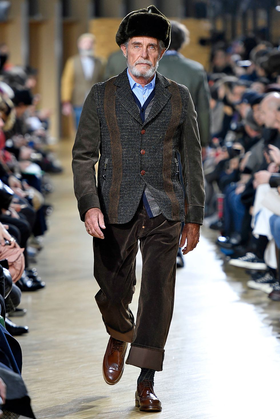 We're so pleased with the fashion industry's increased age diversity in its choice of models lately, needless to say. So you can imagine our excitement when Japanese designer Junya Watanabe sent a harem of fine-ass daddies down the runway modeling his Paris Fashion Week: Men's fall 2019 collection.