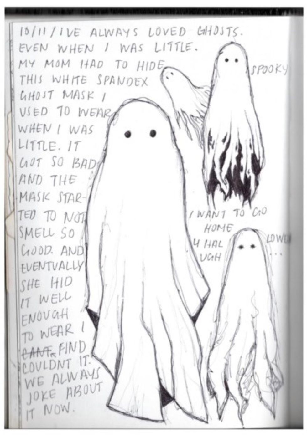 "I think I saw the quote to the side on Tumblr after I finished the song and it was too perfect to not draw it and stick it on the page," he recalled. "I've brought this journal with me everywhere and my friends spilled water all over it, but I honestly like the way it looks a little washed away."