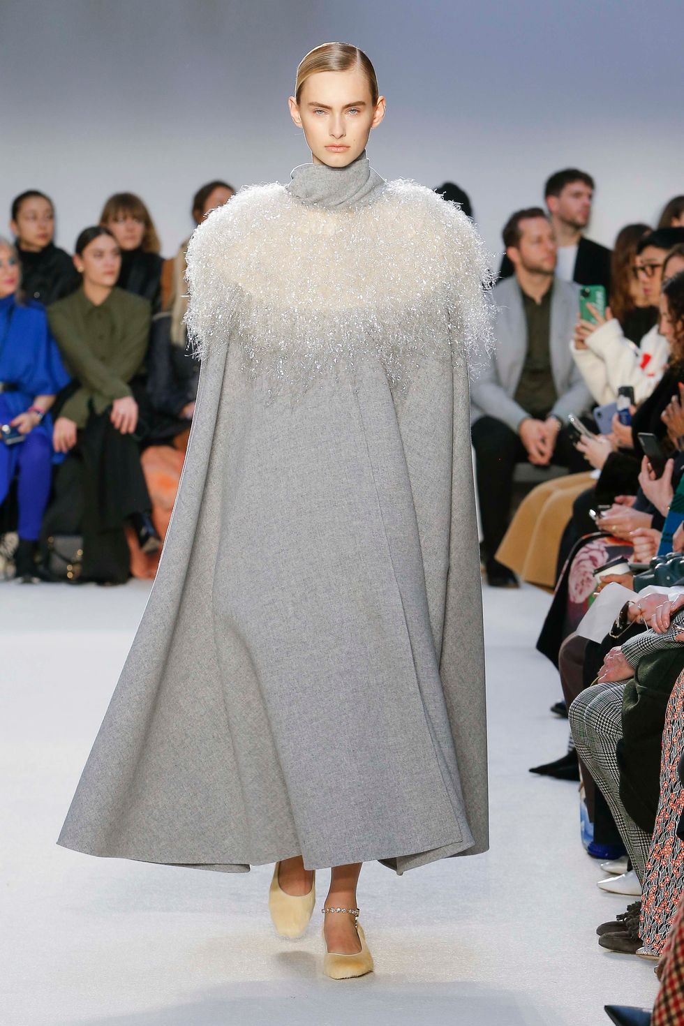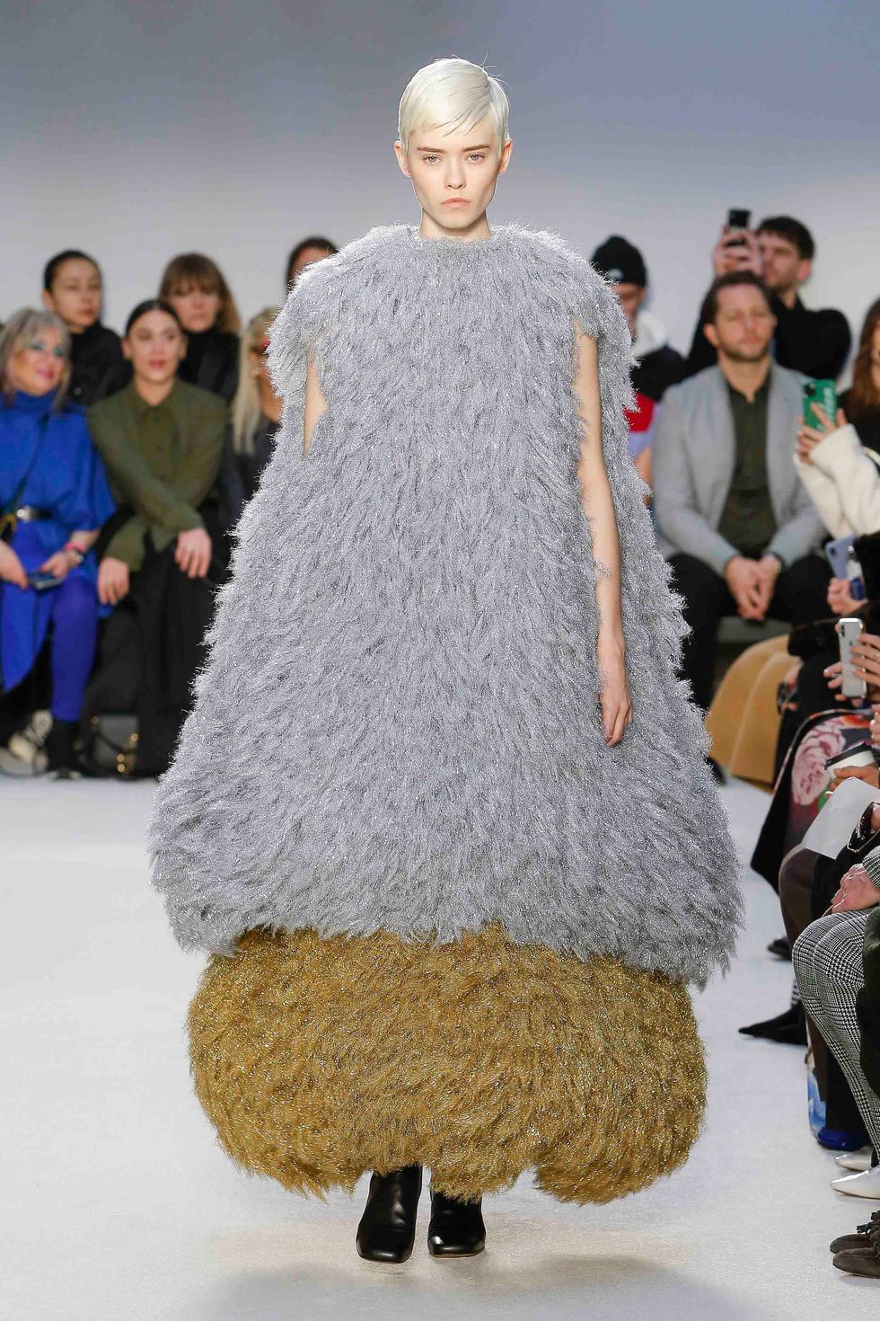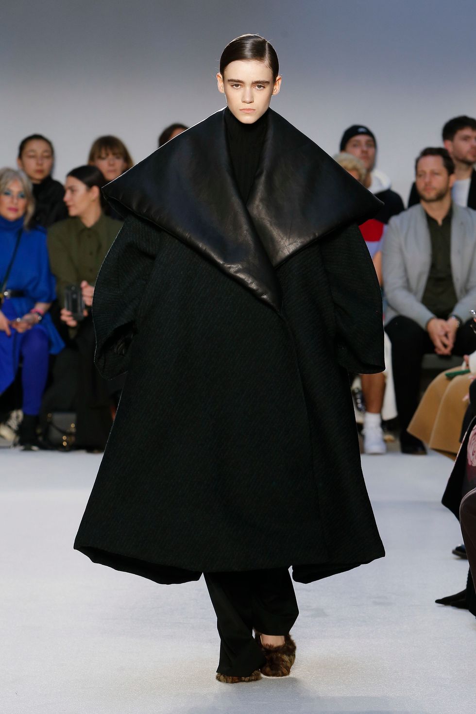 While the play on volume trickled trickled into everything from blankets to dresses, it was the statement outerwear that garnered the most attention on social media. These coats contained leather shawl collars that appeared to explode outwards and were made with custom fabrics developed in-house.