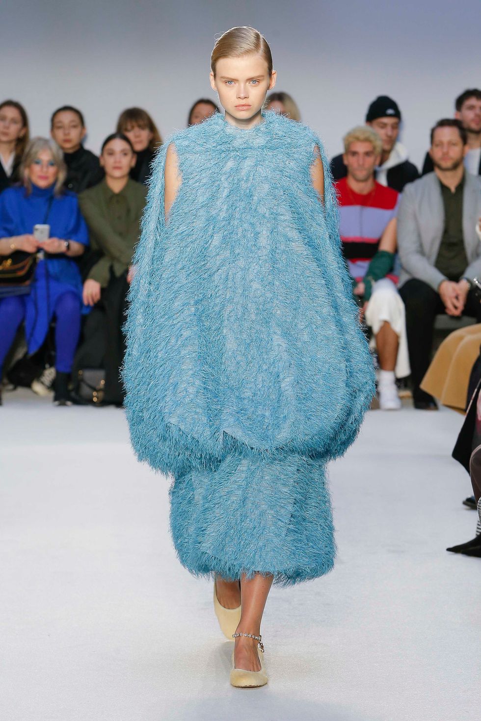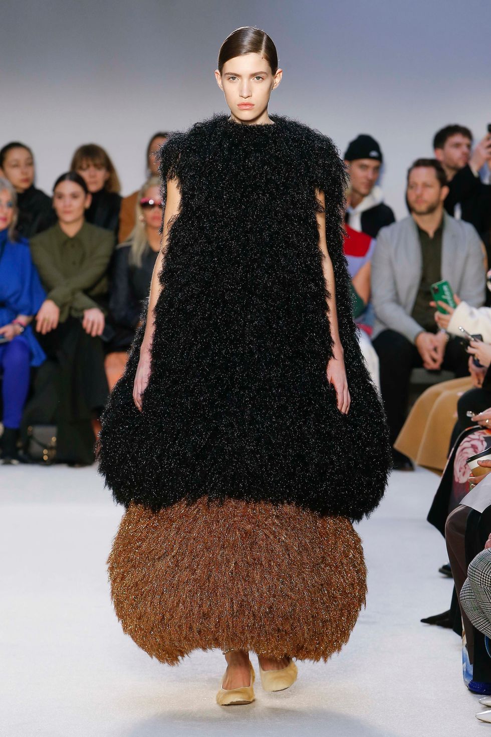 "I was playing with a mixture of fabrics at the studio," Anderson said in a statement. "Some we have used before and some new and it came together in a sort of collage." These included Fil-coupé dresses that moved effortless on the runway as well as knitted dresses and skirts in metallic materials.