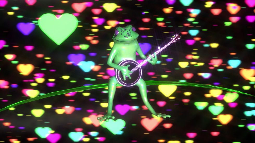 In the video, Musgraves appears as an animated range of otherworldly characters: she's a centaur, a bipedal frog playing the banjo, kaleidoscopic butterflies, and more. A three-second moving image takes anywhere from eight to 30 hours to render, Trippy explains. His imagery, made using Cinema 4D software, perfectly captures the song's bittersweet, but hopeful message of utopia. (It's also a very fitting visual treatment given Musgraves' embracing her inner Camp Queen of late).