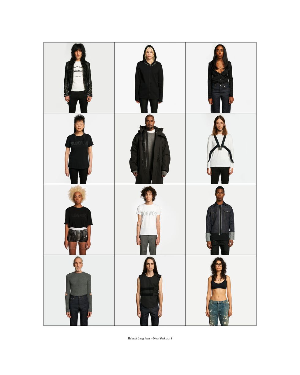 Among the pictured fandom, you'll immediately recognize Kanye West, who's been a vocal admirer of Helmut throughout the years. "I had a heartfelt discussion with all of these fucking Helmut Lang images that I stared at for so many years," the rapper told InStyle upon launching his 2015 Yeezy collection, which took direct inspiration from Helmut's work. In "Exactitudes," West sports his own pieces: an monochromatic oversized coat, and sweat combo.