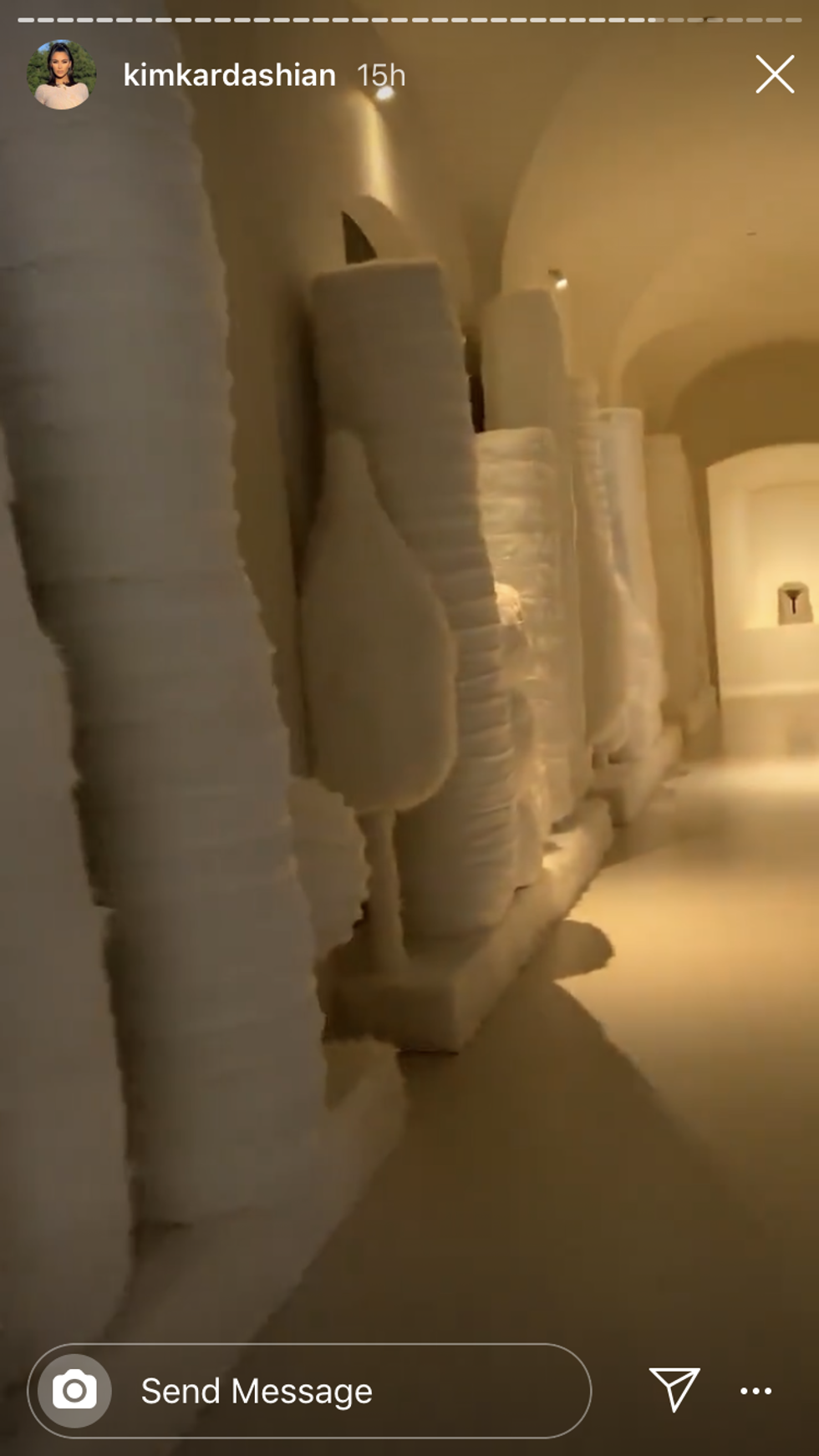 Kim reveals in her Instagram story (you've got 9 hours left to view the full house tour) that the "trees" were first created for the family's Christmas Eve party last year. Well, at least they're recycling rather than contributing to the piles of tinsel and ornaments that land in dumpsters every January.