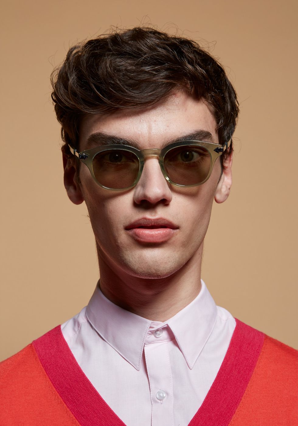Visage combines the refinement and glam of Cannes in the 1950s with a fun injection of mod stylings of the 1960s. Introducing two new styles to her Monumental line of mens eyewear with the Klee and Ali, Walker manages to create a timeless design that retains its youthful sense of play and personality. In a similar blend of throwback classicism and new age attitudes, the campaign for Visage is an homage to Hollywood glam that blurs the lines of gender in a way that feels very au courant.