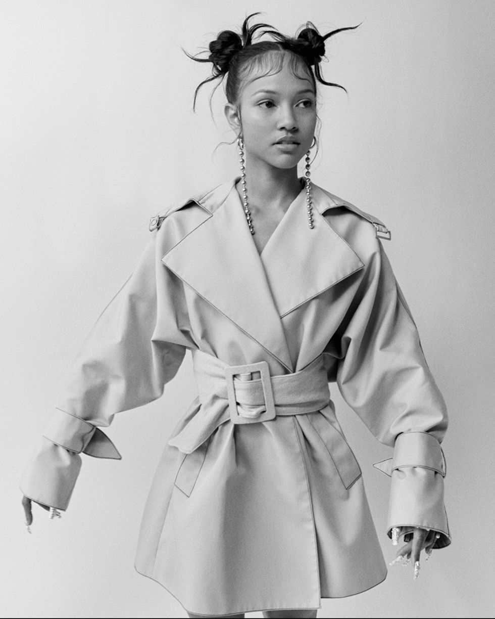 Coat: Opening Ceremony, Belt: Deborah Drattell, Earrings: Jennifer Fisher